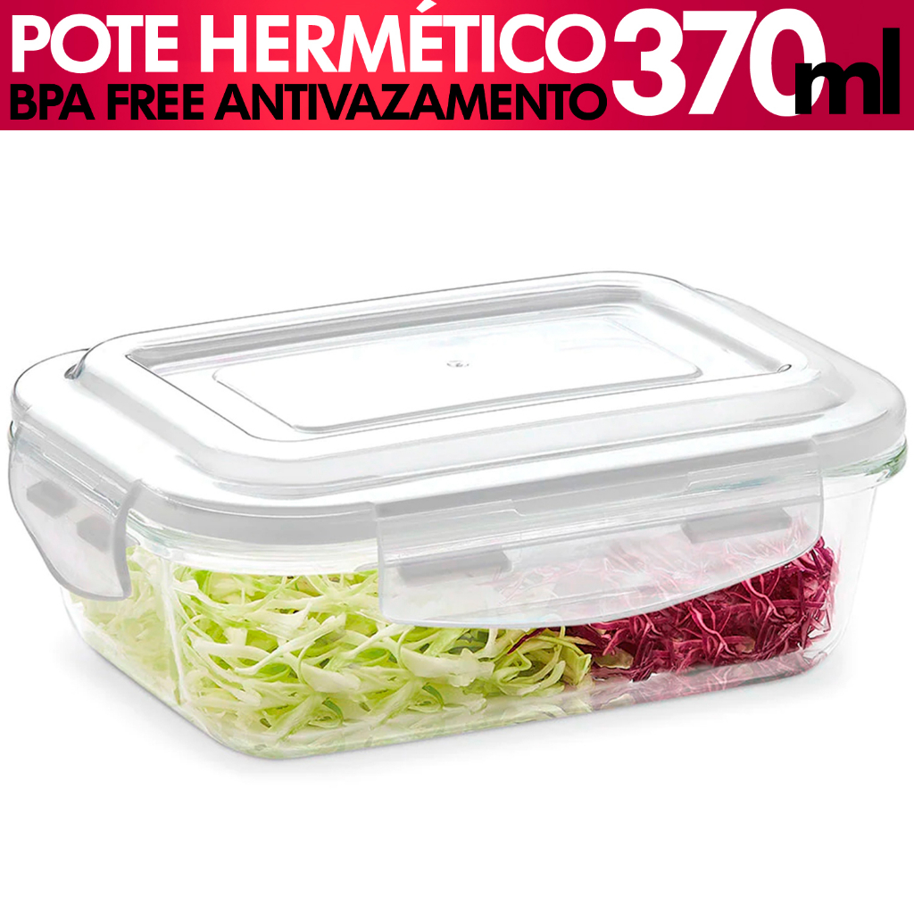 Pote De Vidro Hermetico 370ml Retangular BPA Free Tampa Plastica Armazenar E Conservar Alimentos Freezer Microondas