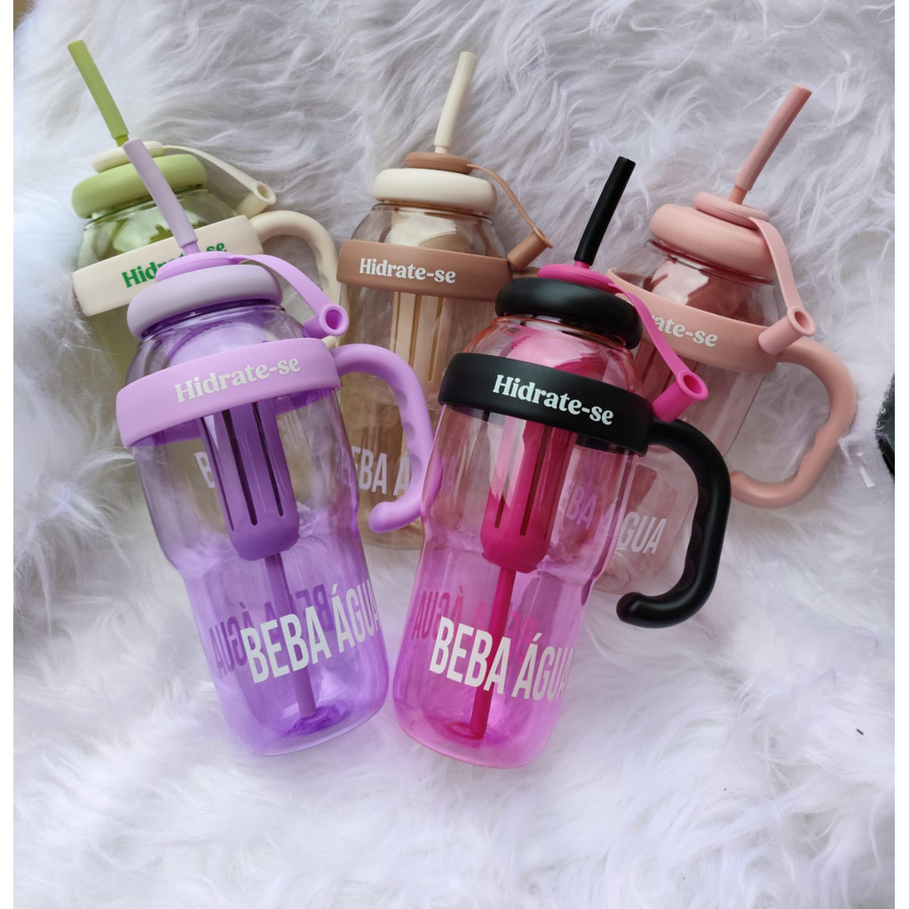 Garrafa de Água com Canudo de Silicone Grande com 1350ml Capacidade com Filtro Portátil ICE CUP