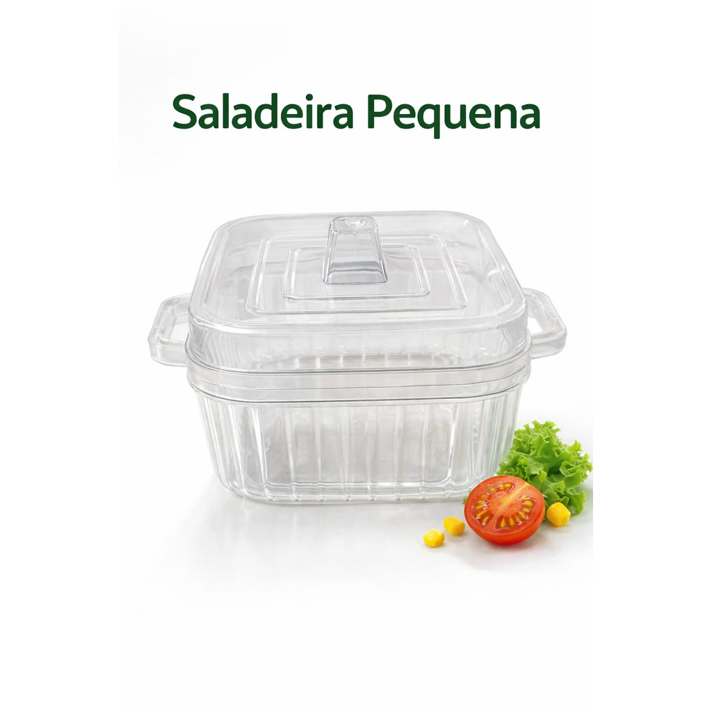 saladeira De Plástico Bowl Redonda Transparente Pet 305g Recipiente Com Tampa 2,8L