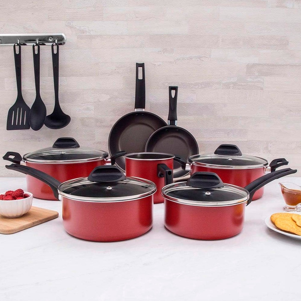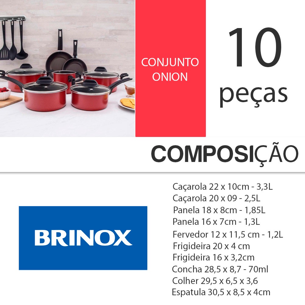Jogo de Panelas Brinox Onion em Alumínio com Revestimento Antiaderente - Vermelho - 10 Peças