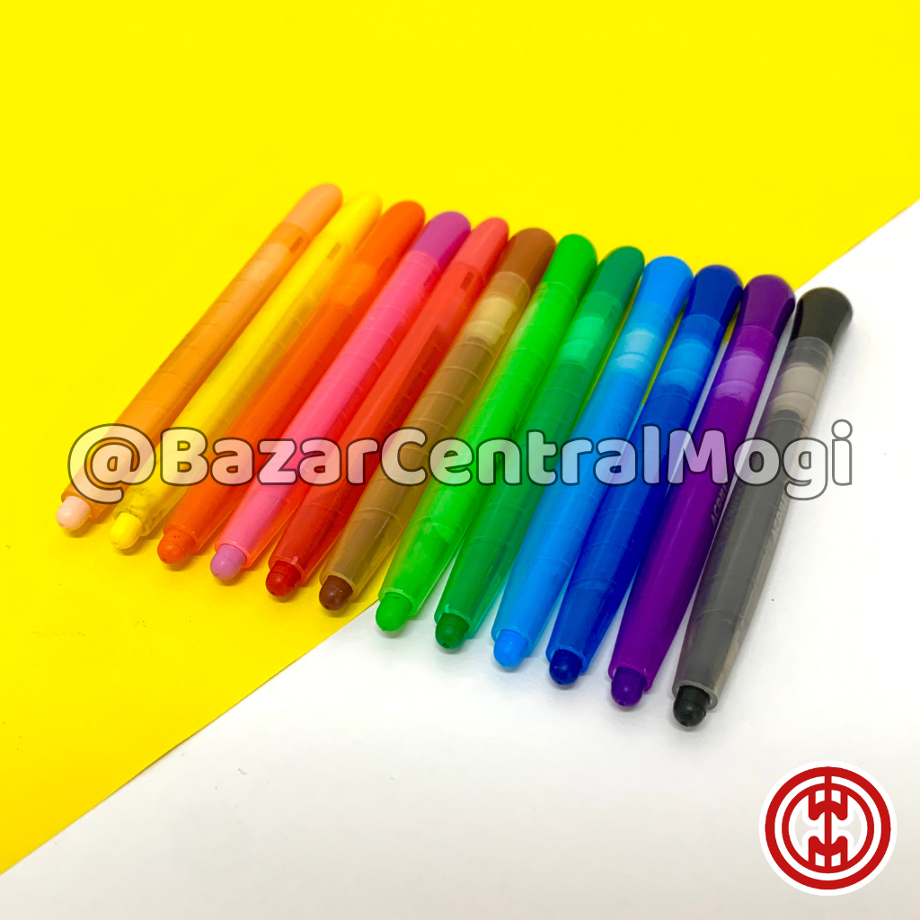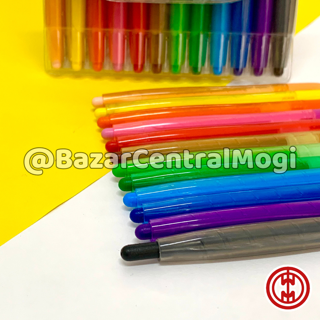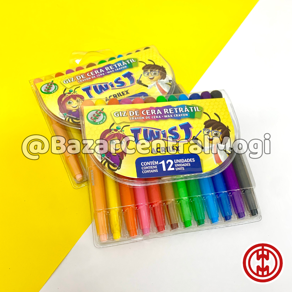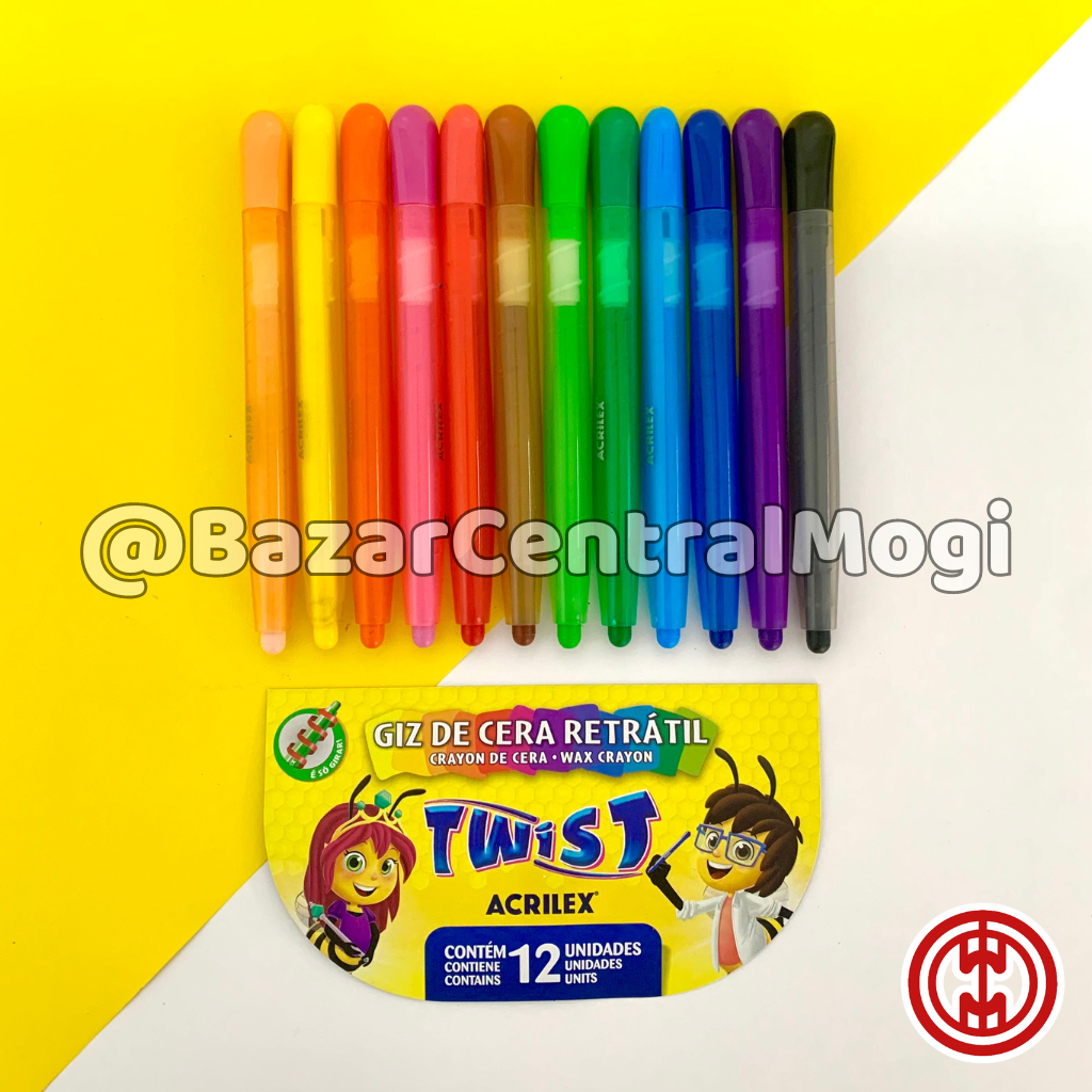 Giz de Cera Retrátil Twist 12 Cores Acrilex Resistente Escolar