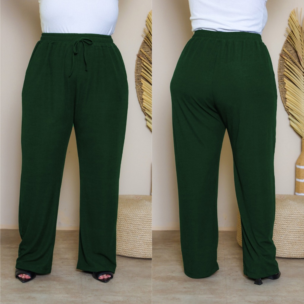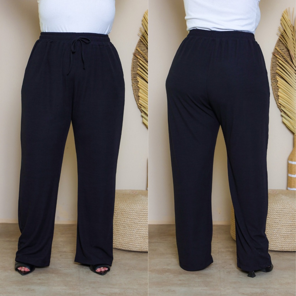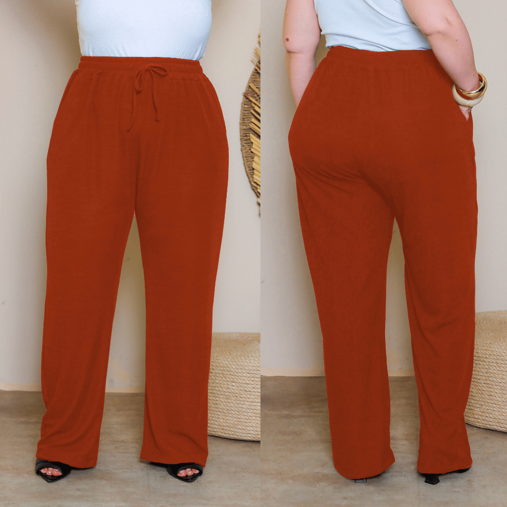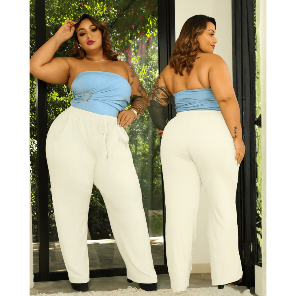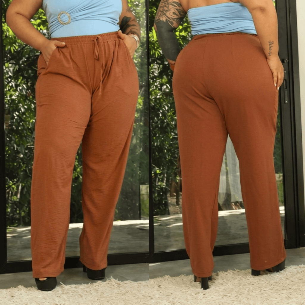 Calça Pantalona Plus Size Feminina G1 ao G6 Tecido Canelado Premium Cintura Alta Com Bolsos