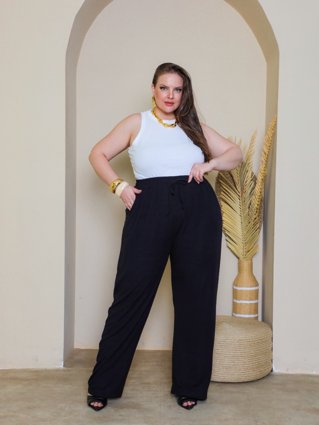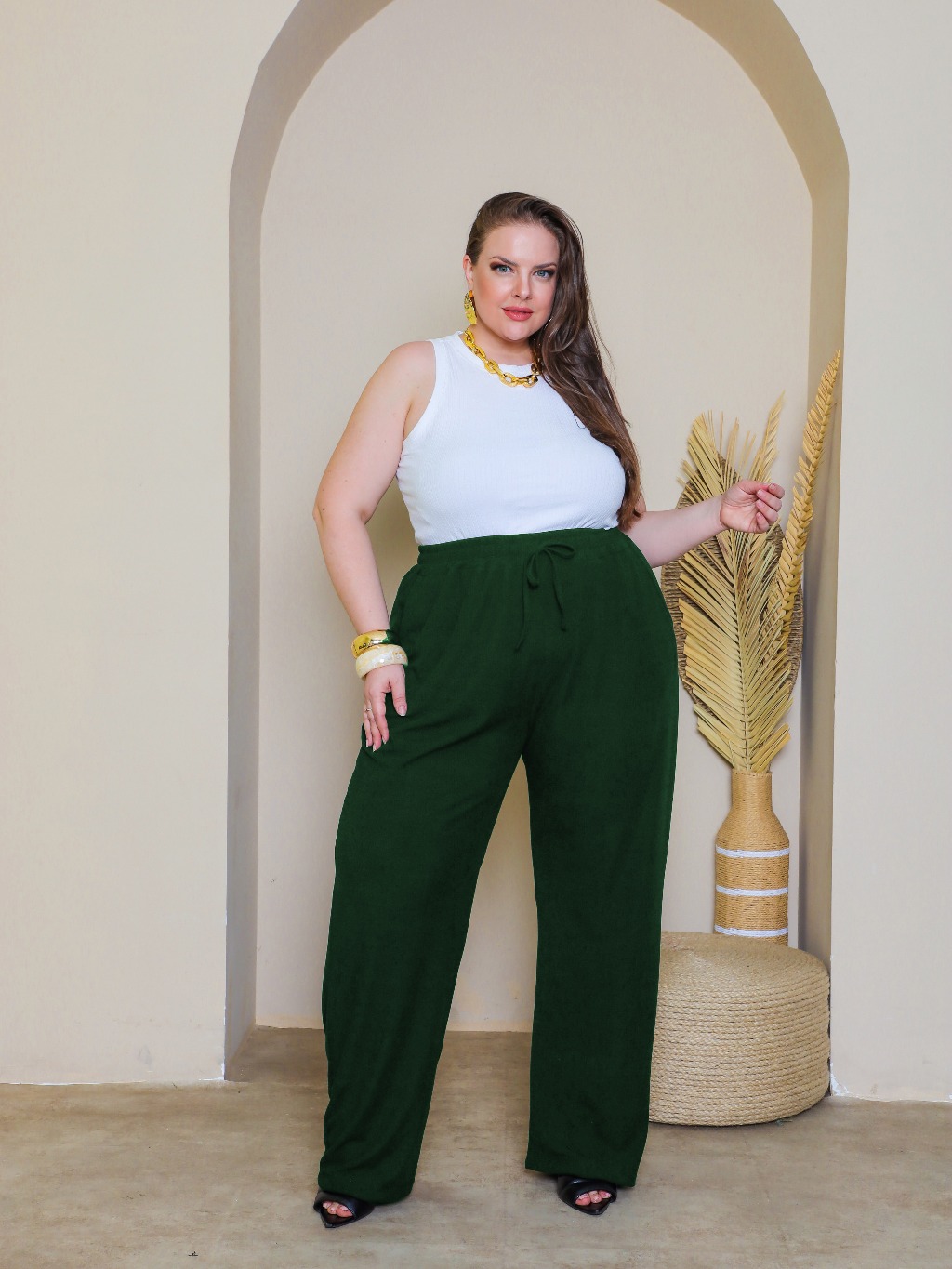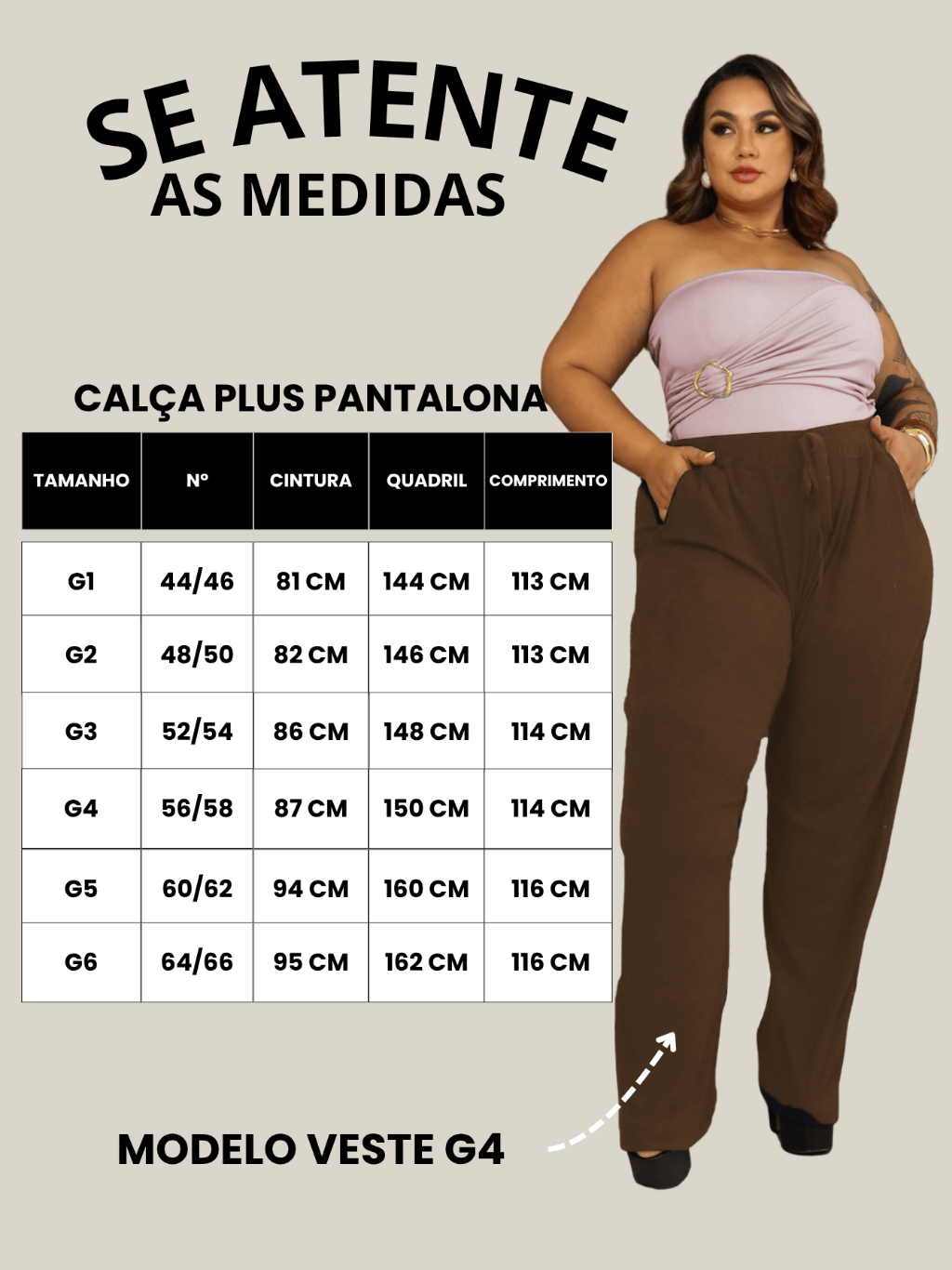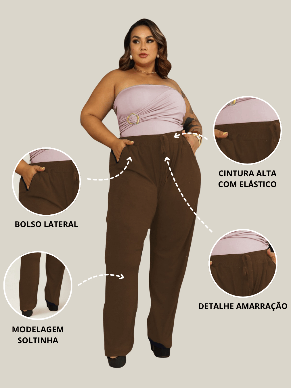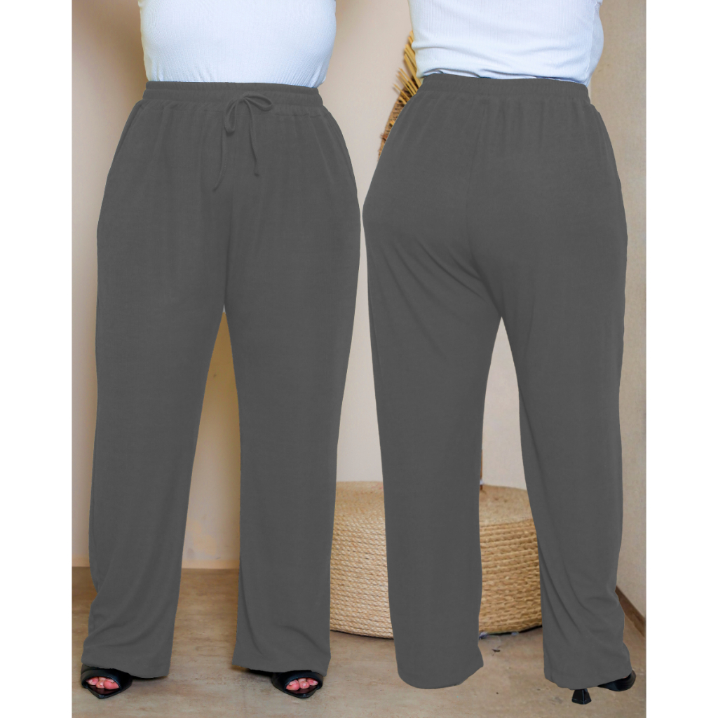 Calça Pantalona Plus Size Feminina G1 ao G6 Tecido Canelado Premium Cintura Alta Com Bolsos