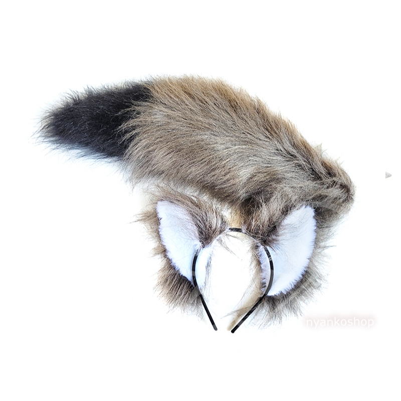 Kit Lobo duas Cores: Orelha + Cauda Lobo, Raposa, Coyote Cosplay Visual Pelúcia Horo Artesanal