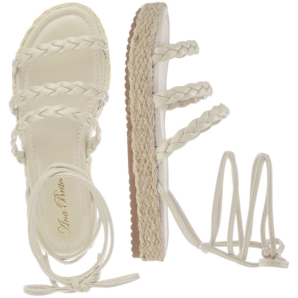 sandália feminina rasteirinha Plataforma Papete Flatform Birken Feminina Amarrar Tranças Corda 186 D'brito Shoes