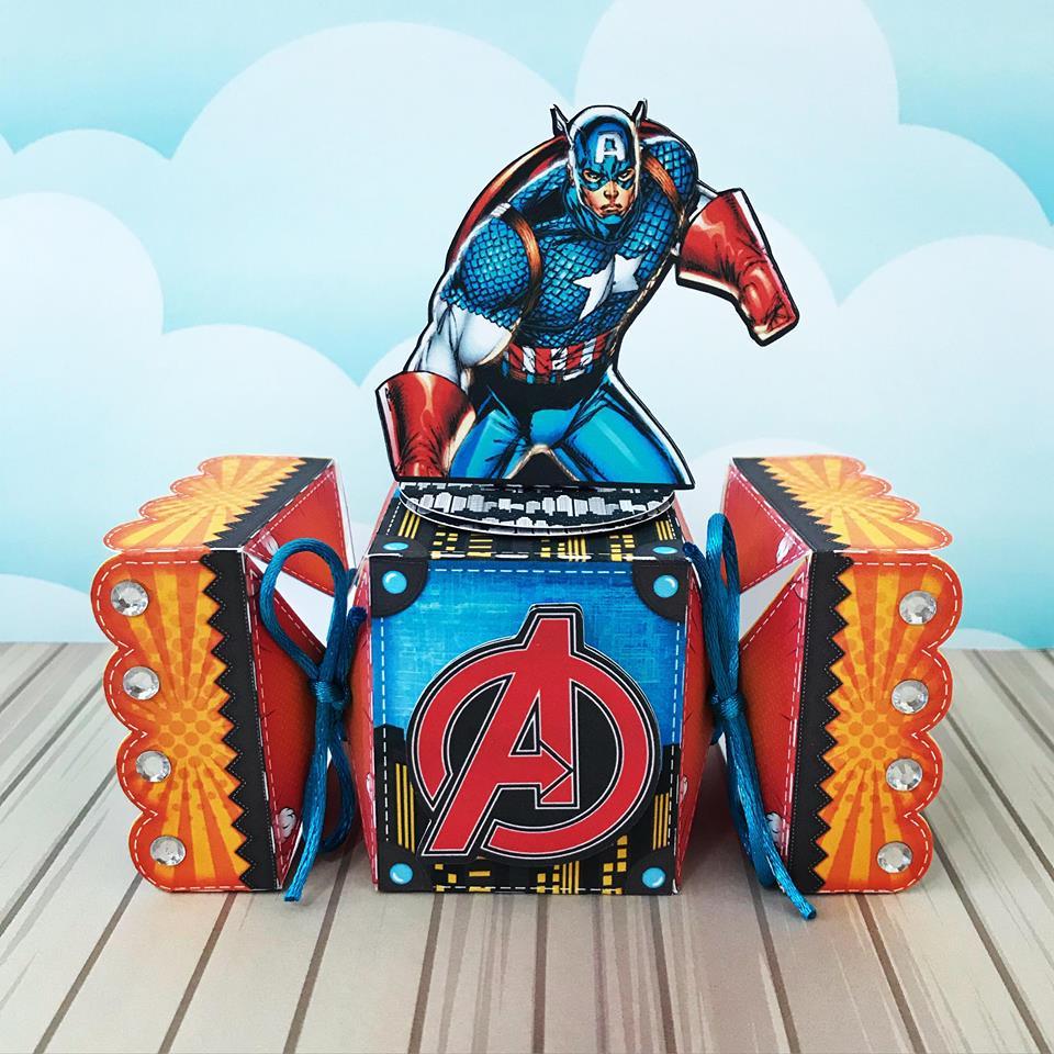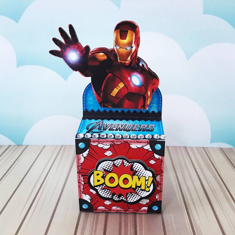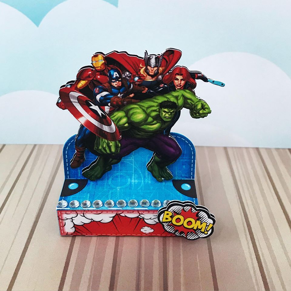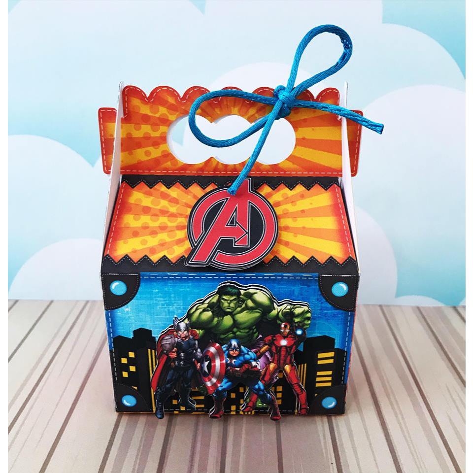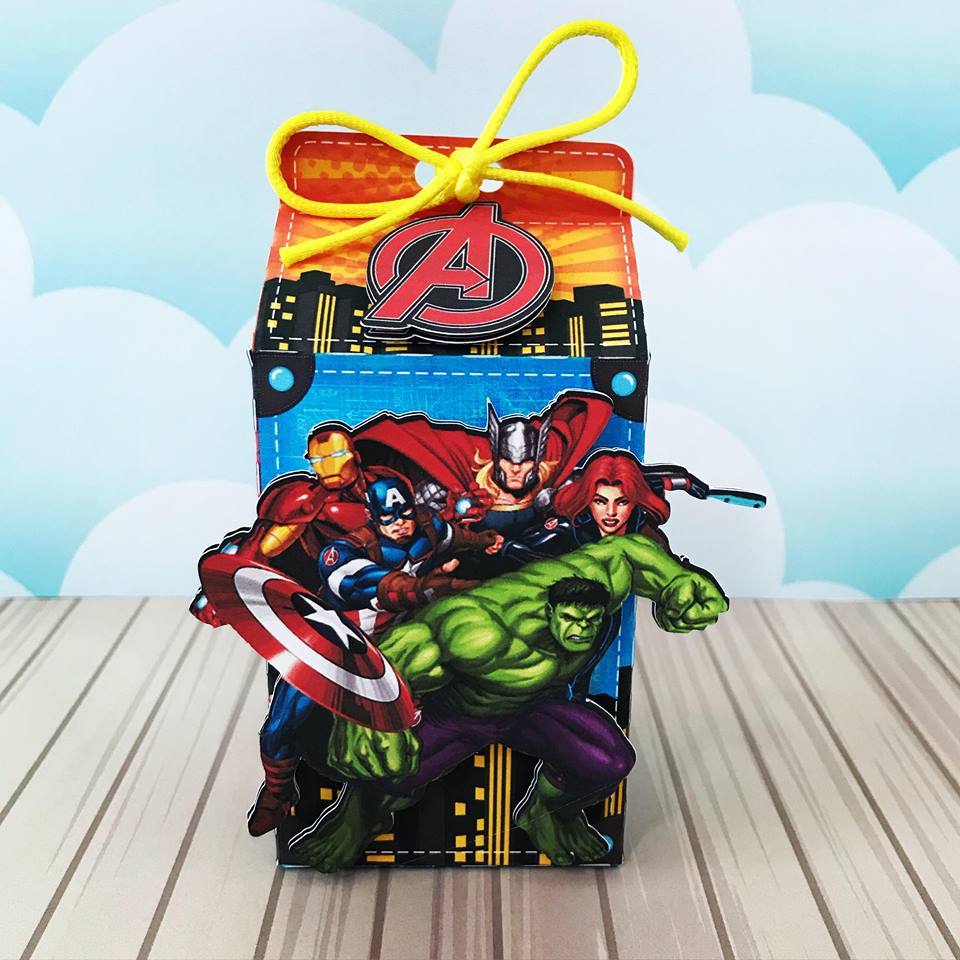 KIT 10UN Caixinhas 3D personalizadas Vingadores Herois Milk, Piramide, Bala Papel foto 230g caixa