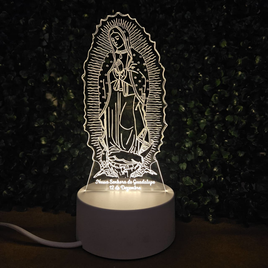 Luminária LED Acrílico Nossa Senhora de Guadalupe – Decoração Religiosa e Presente de Fé