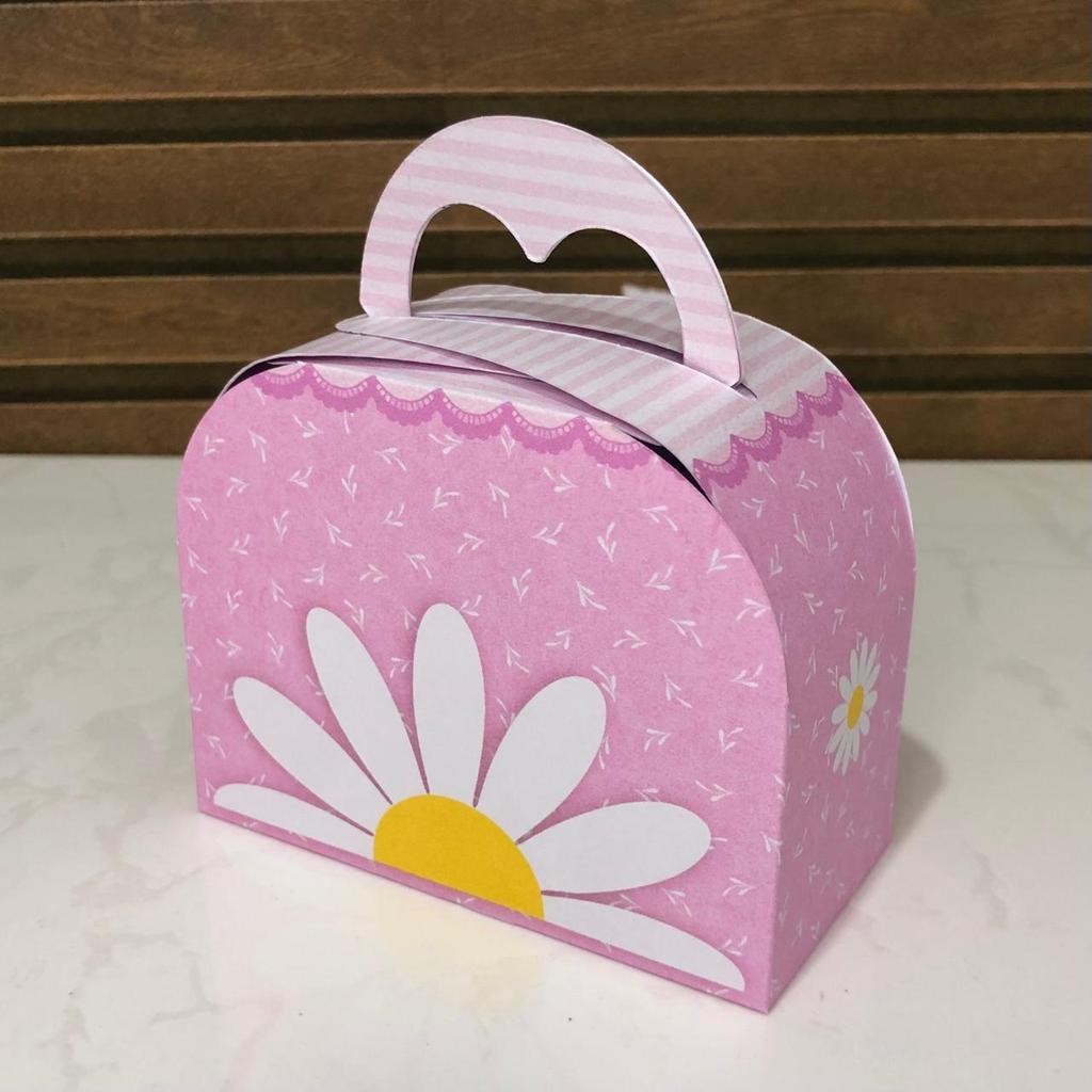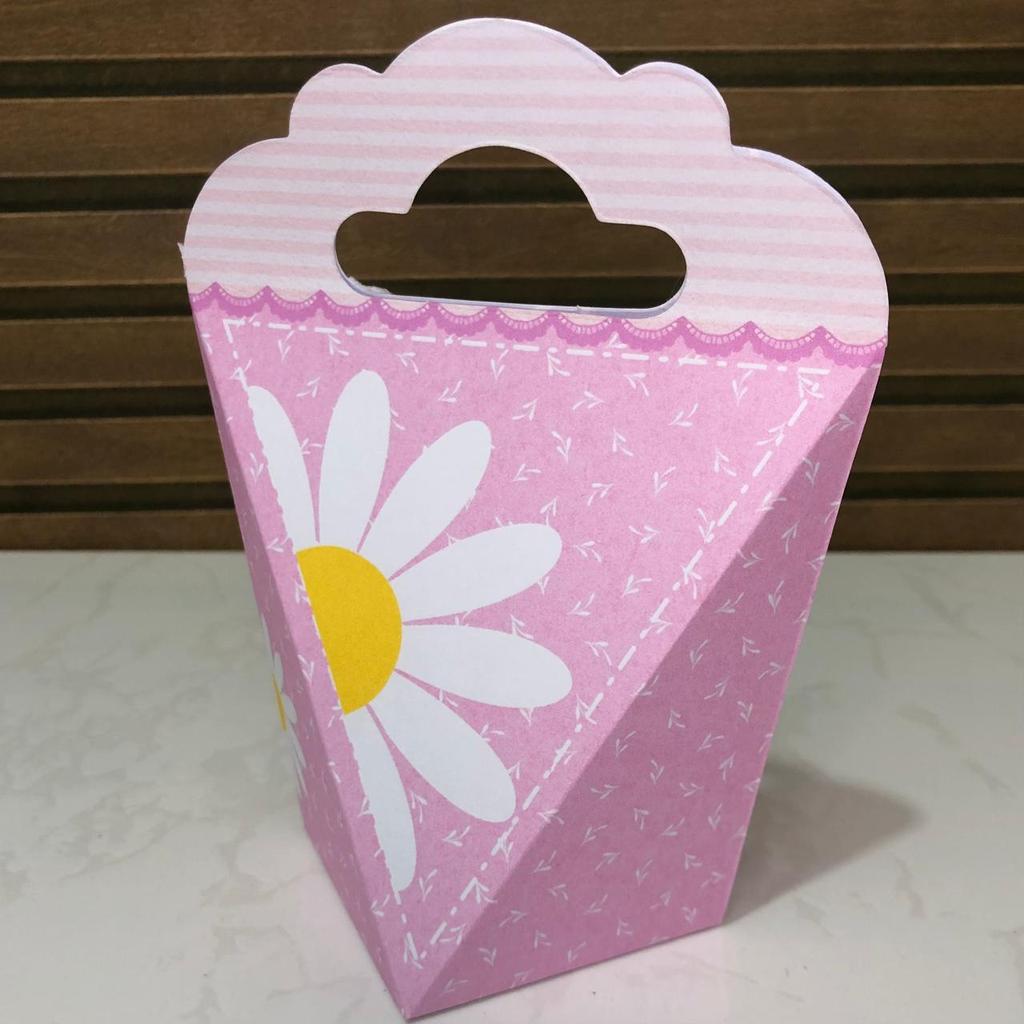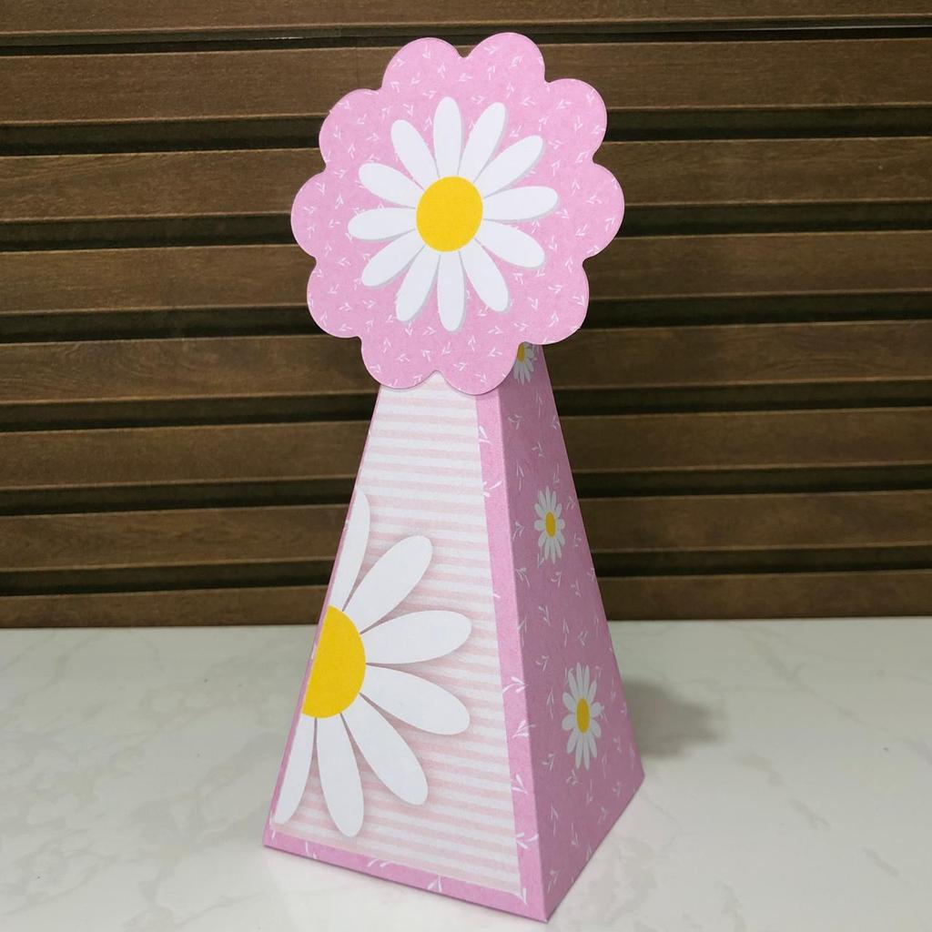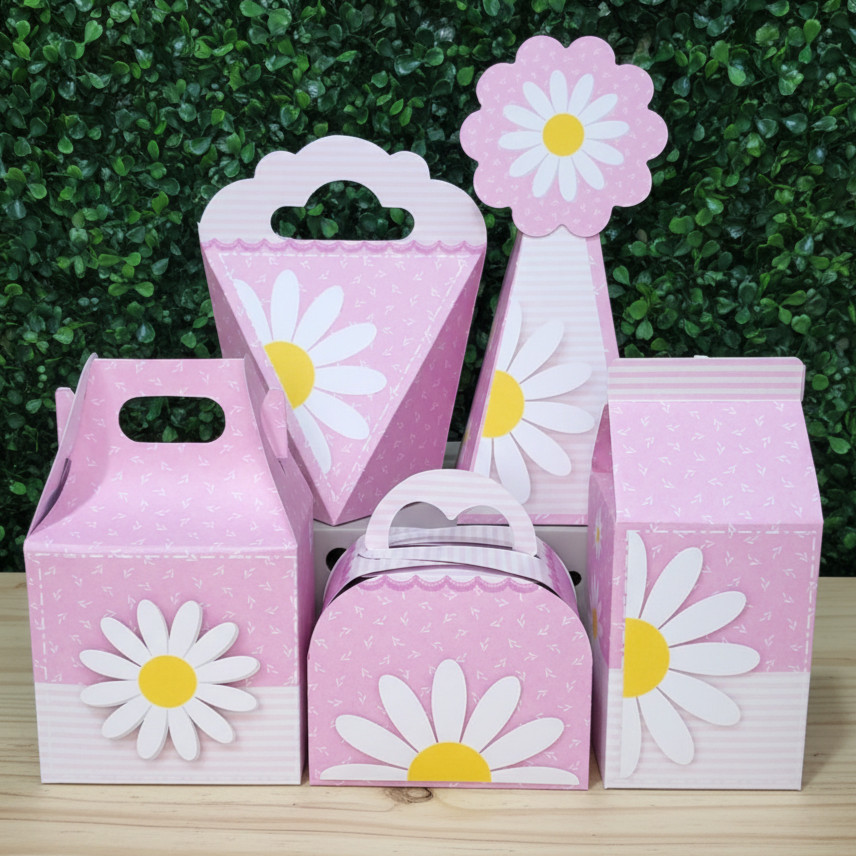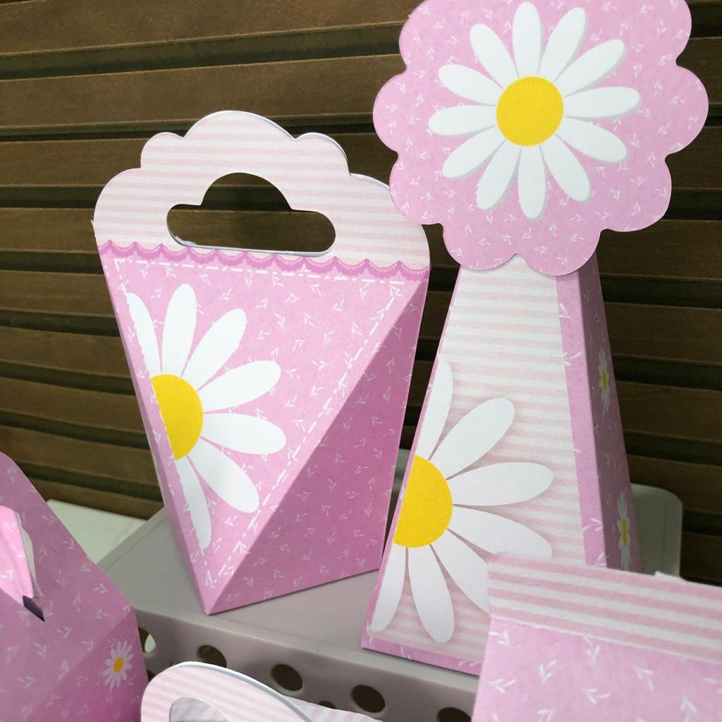 Kit 20/40/60 Caixinhas Margaridas Rosa - Lembrancinha Aniversário Infantil (Pegue e Monte)