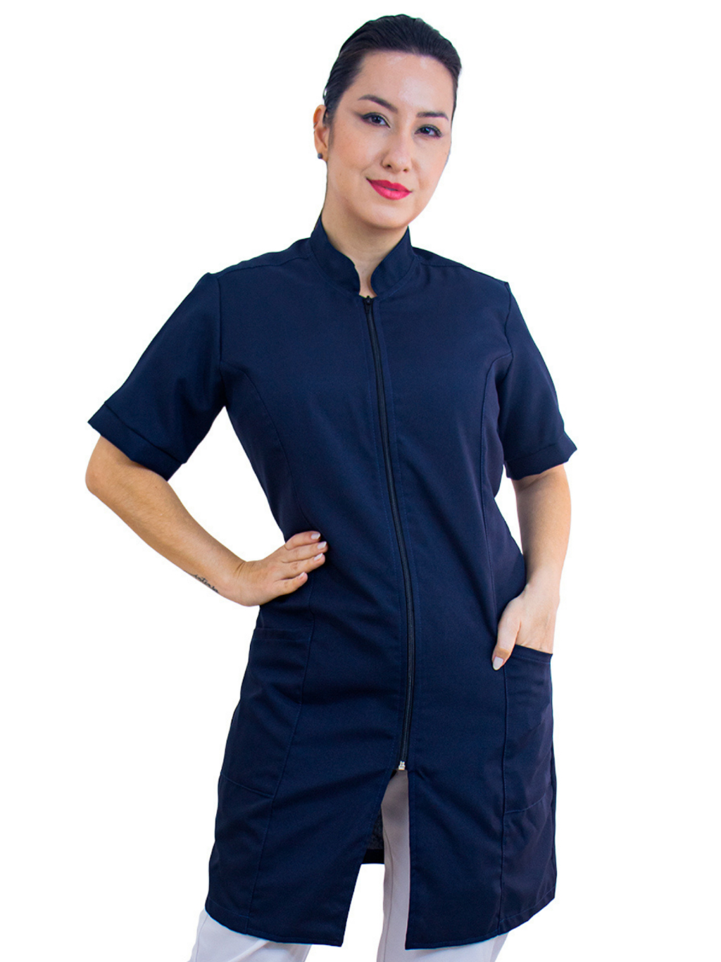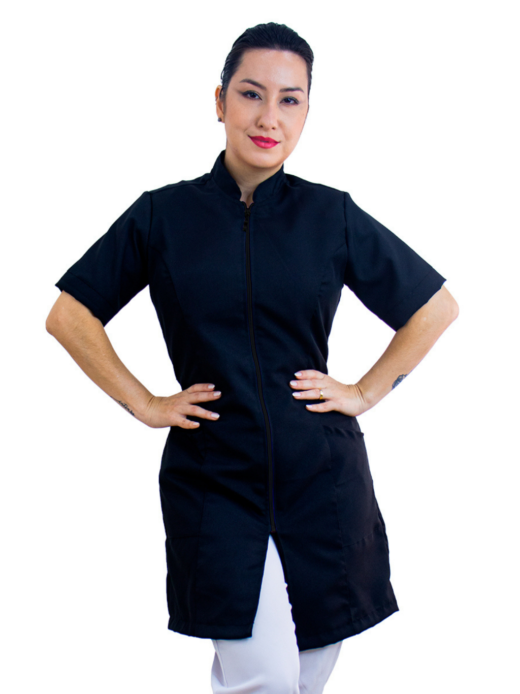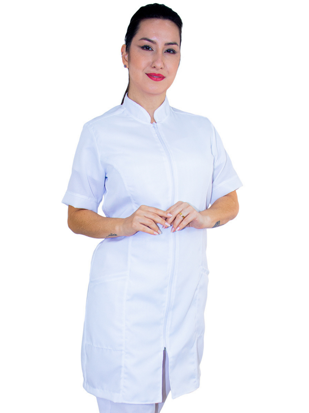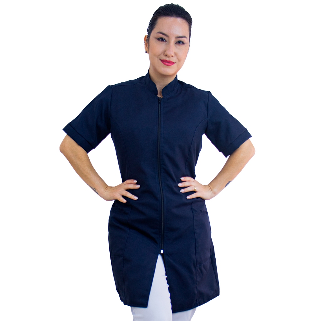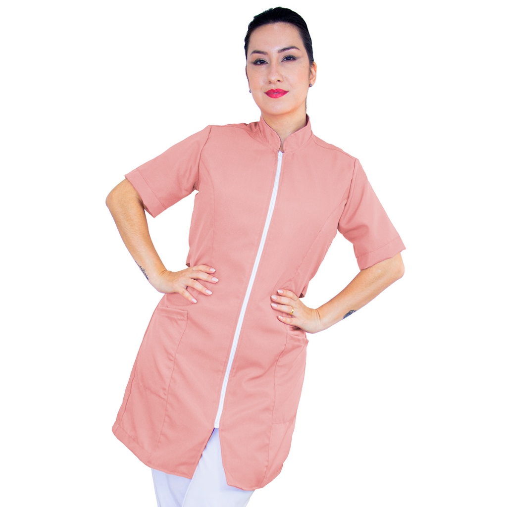 Jaleco Feminino Manga Curta Oxford Bordado Personalizado Com Sua Logo Nome