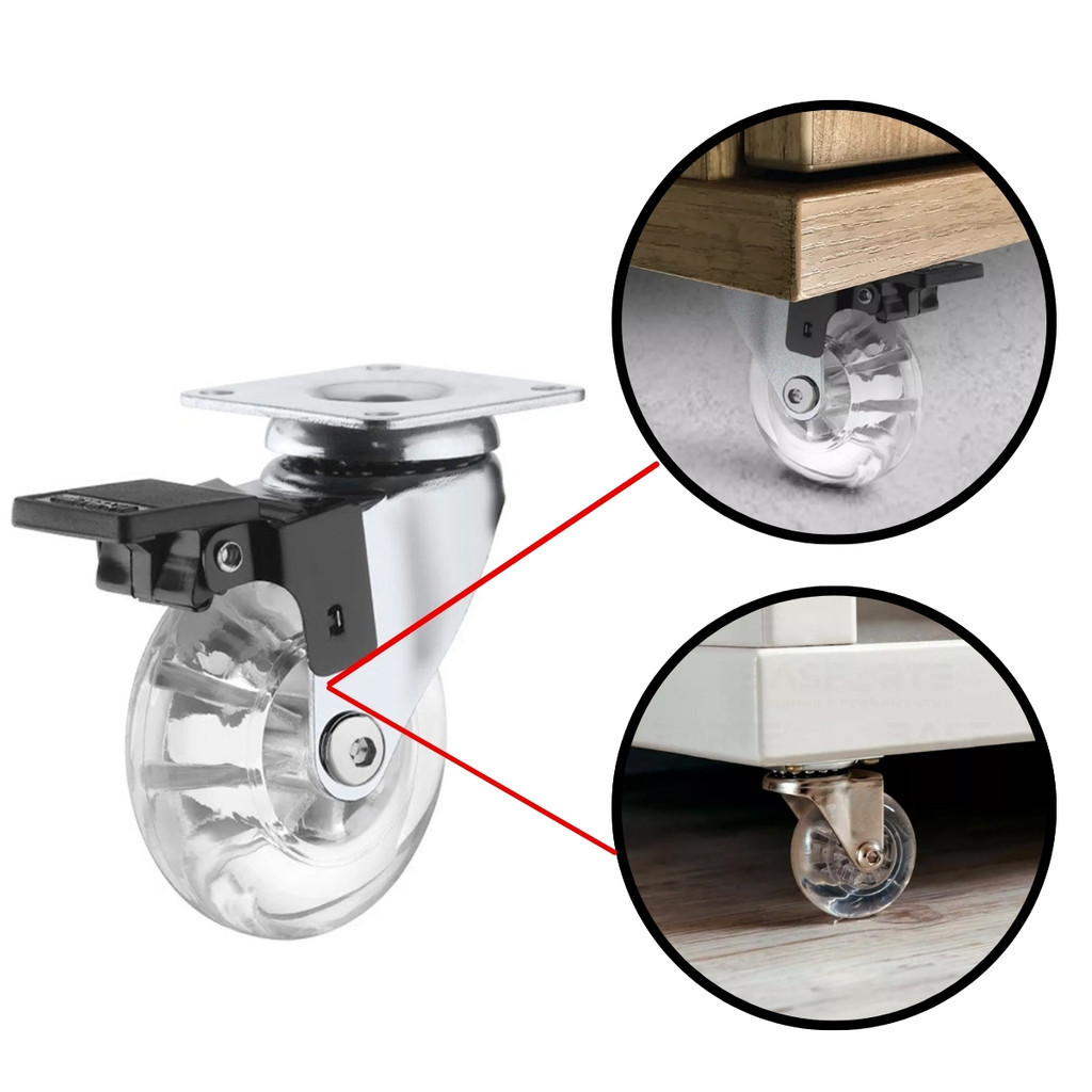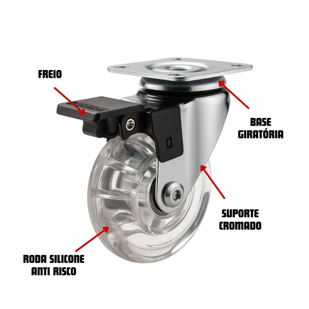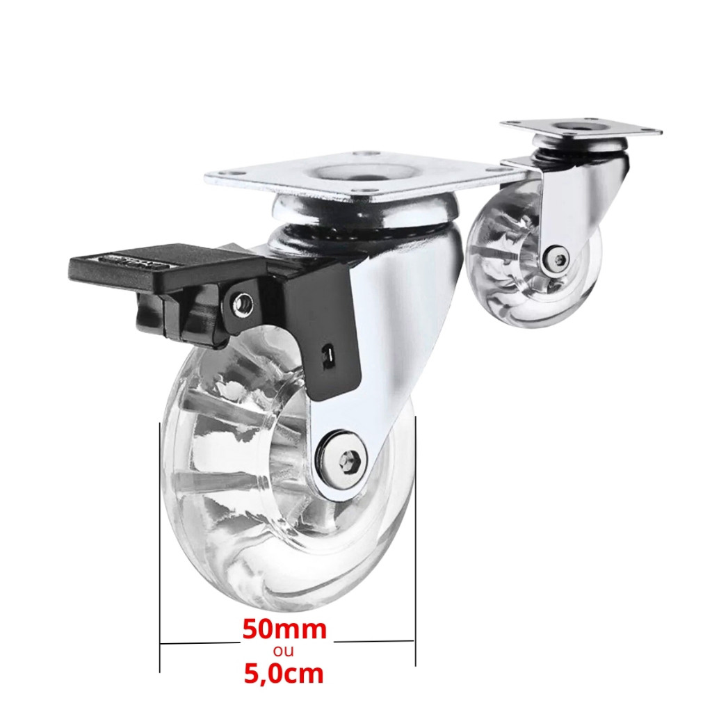 Kit 4 Rodízio Giratório Silicone Gel 35mm 50mm 75mm 2 Com Trava 2 Sem Trava Com Parafusos Reforçado