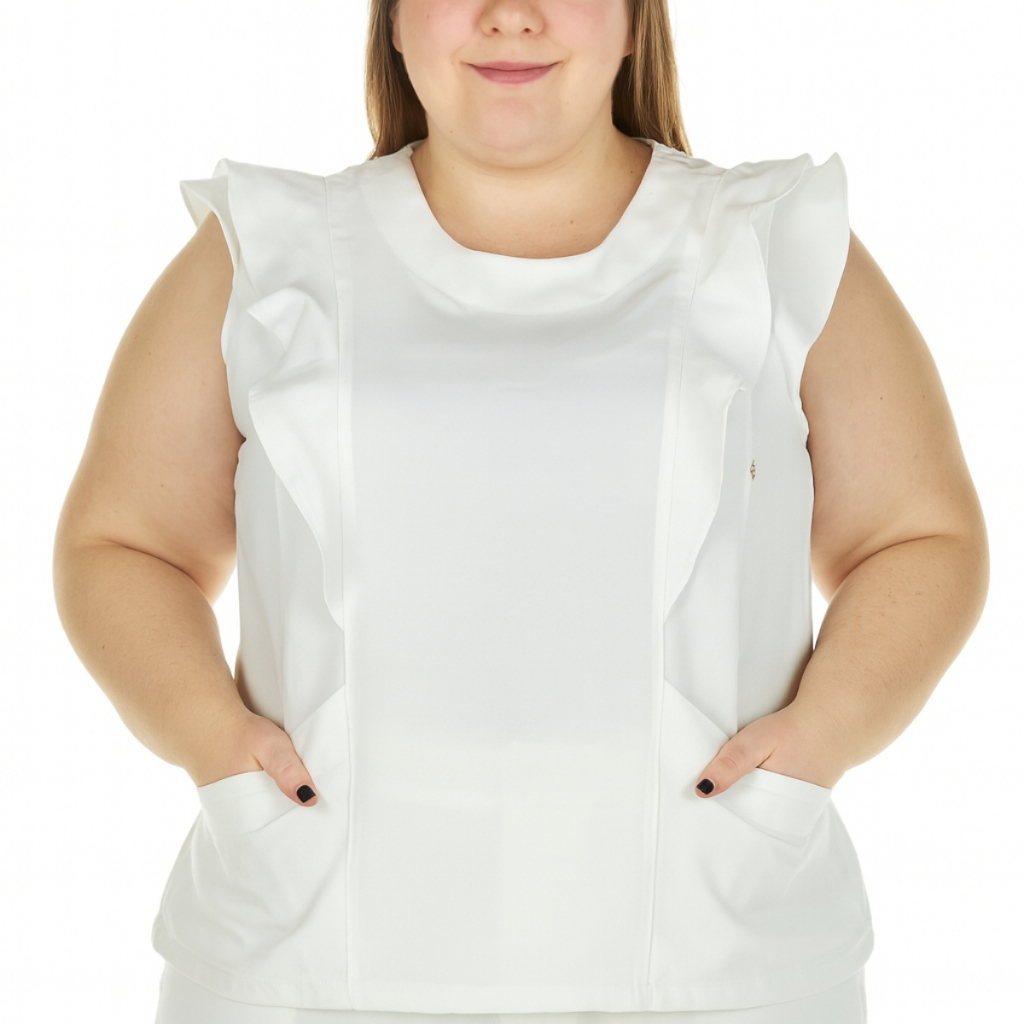 Blusa Scrub Feminina Plus Size Babado Elegante Conforto Profissional Estilo Moderno Trabalho