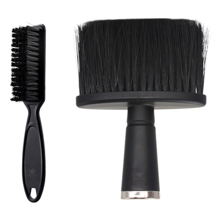 Espanador Macio Para Barbeiro E Escova Degradê Preto