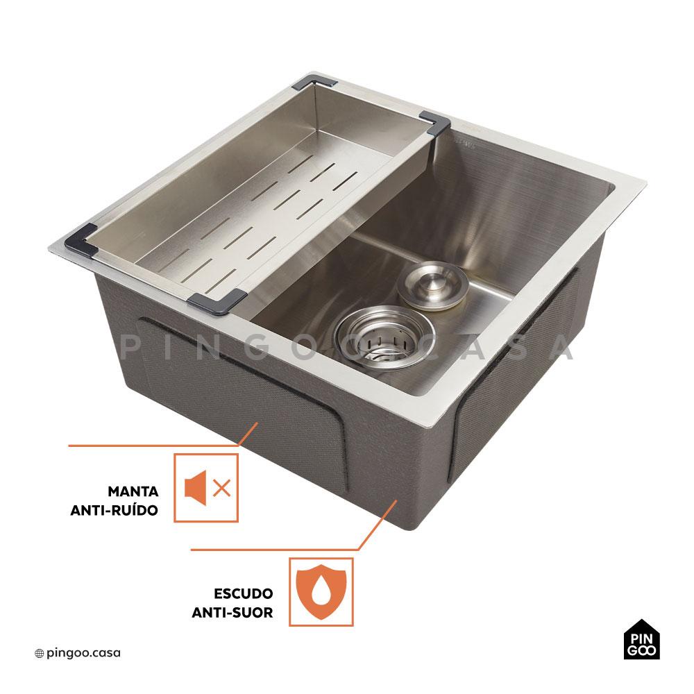 Cuba para cozinha gourmet pia aço inox com acessórios Terena 40 cm Pingoo - Prata