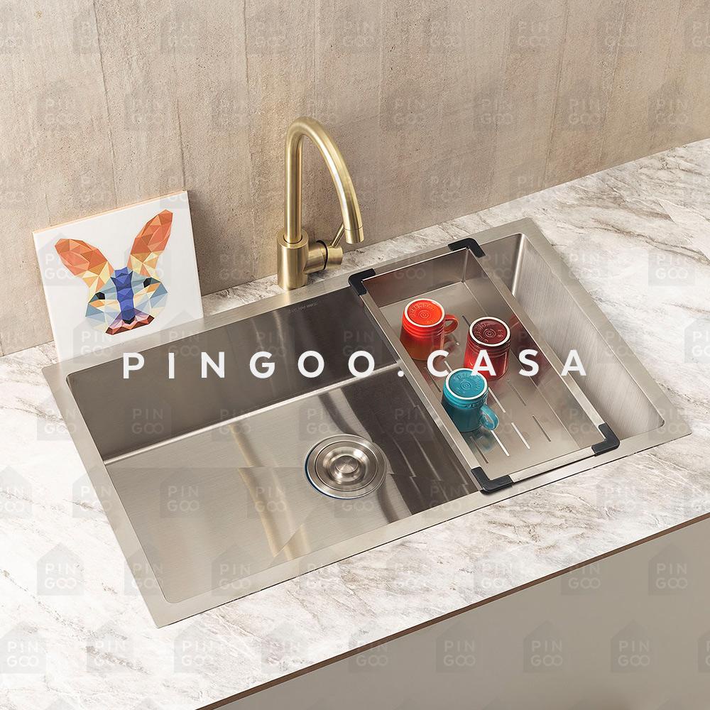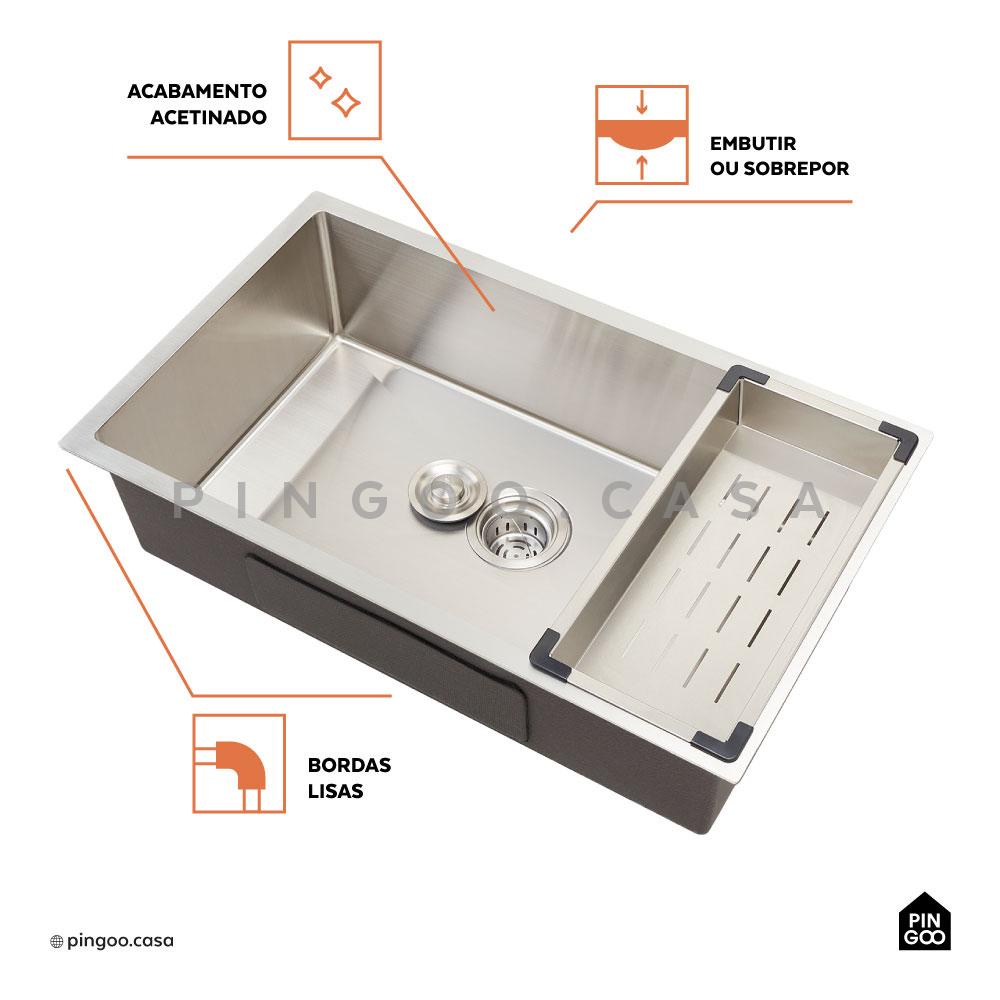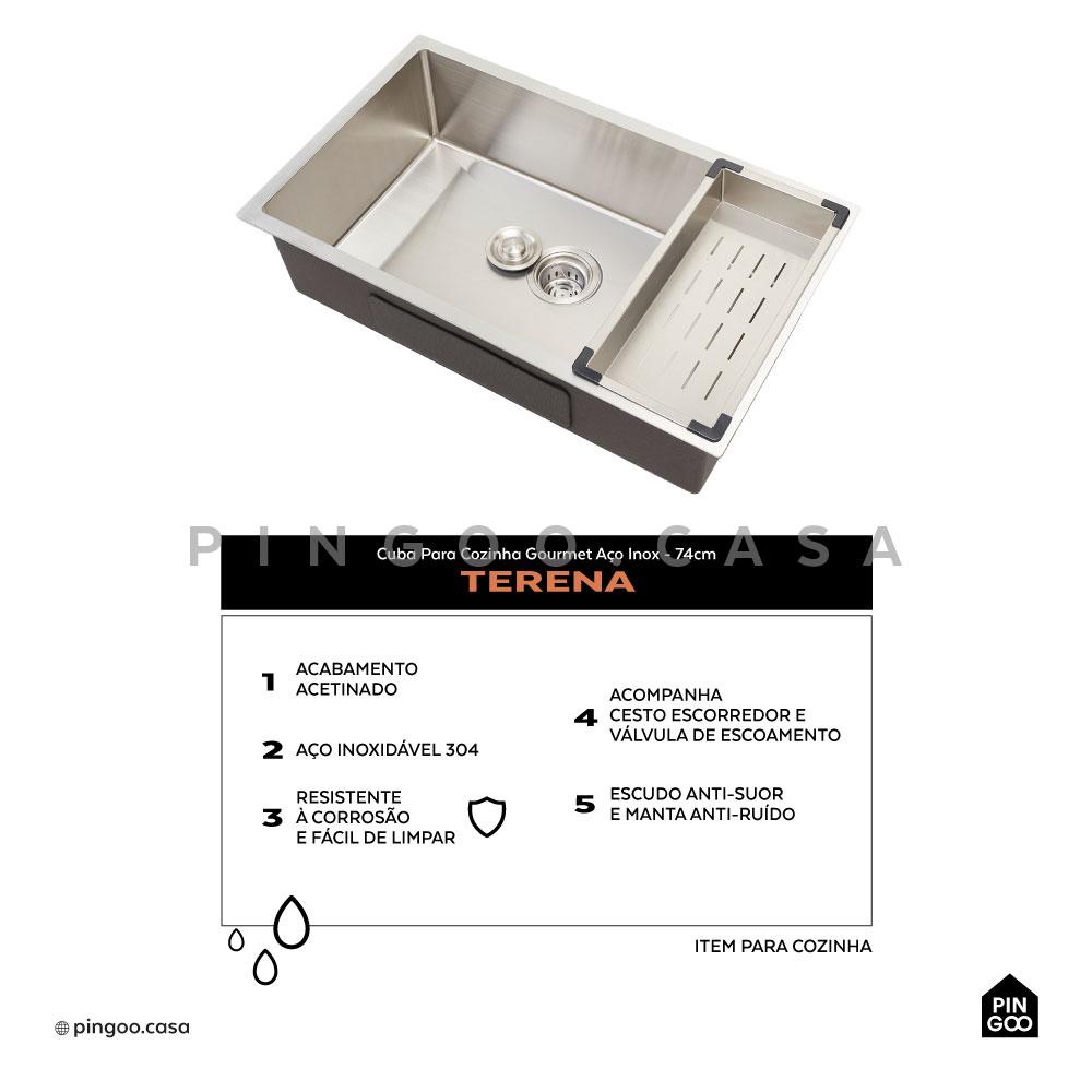 Cuba Para Cozinha Gourmet Aço Inox 304 Terena 74x44 cm Pingoo - Prata