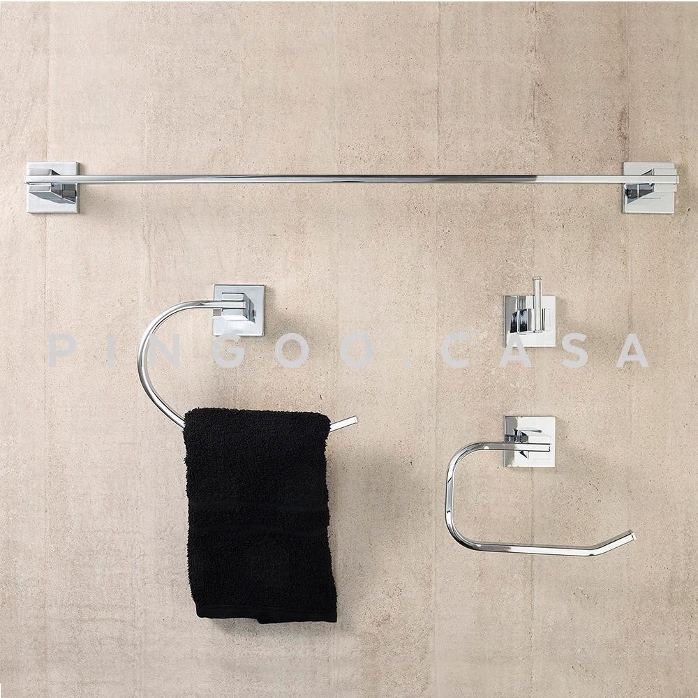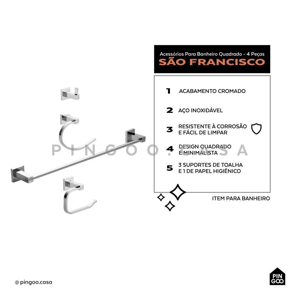 Acessórios Para Banheiro Quadrado 4 Peças São Francisco Pingoo - Prata