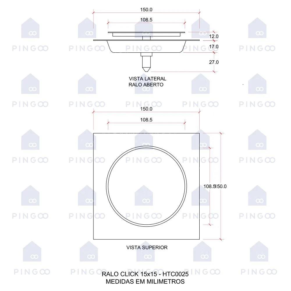 Ralo Click Up Para Chão 15 cm Inox Pingoo - Dourado