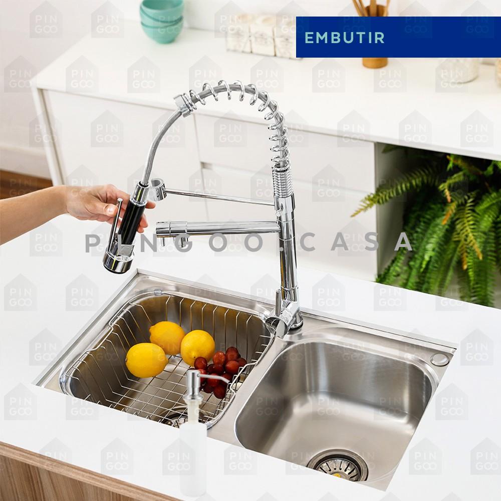 Cuba para cozinha pia dupla com acessórios Ticunas e Torneira monocomando gourmet Munim Pingoo