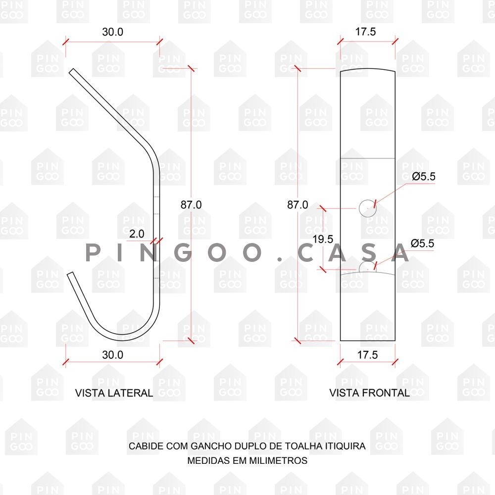 Gancho Duplo De Toalha Itiquira Pingoo - Prata