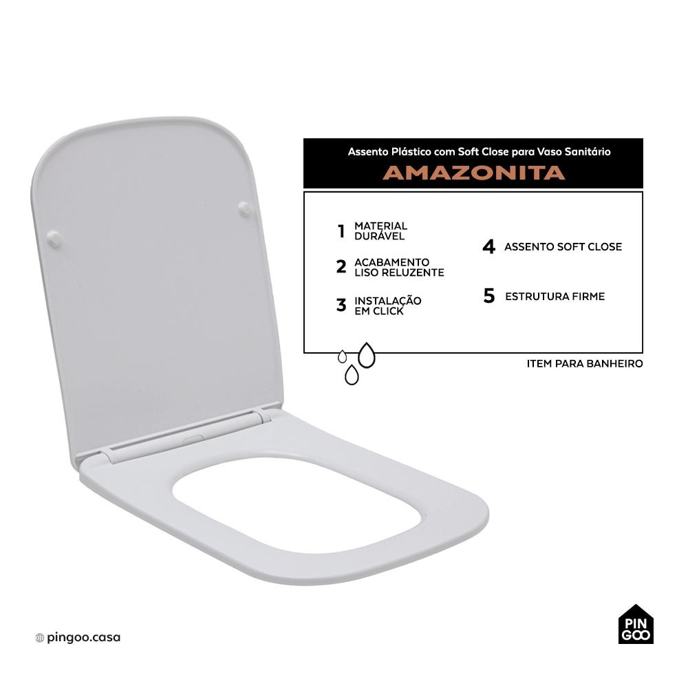 Assento Plástico com Soft Close para Vaso Sanitário Amazonita Pingoo - Branco
