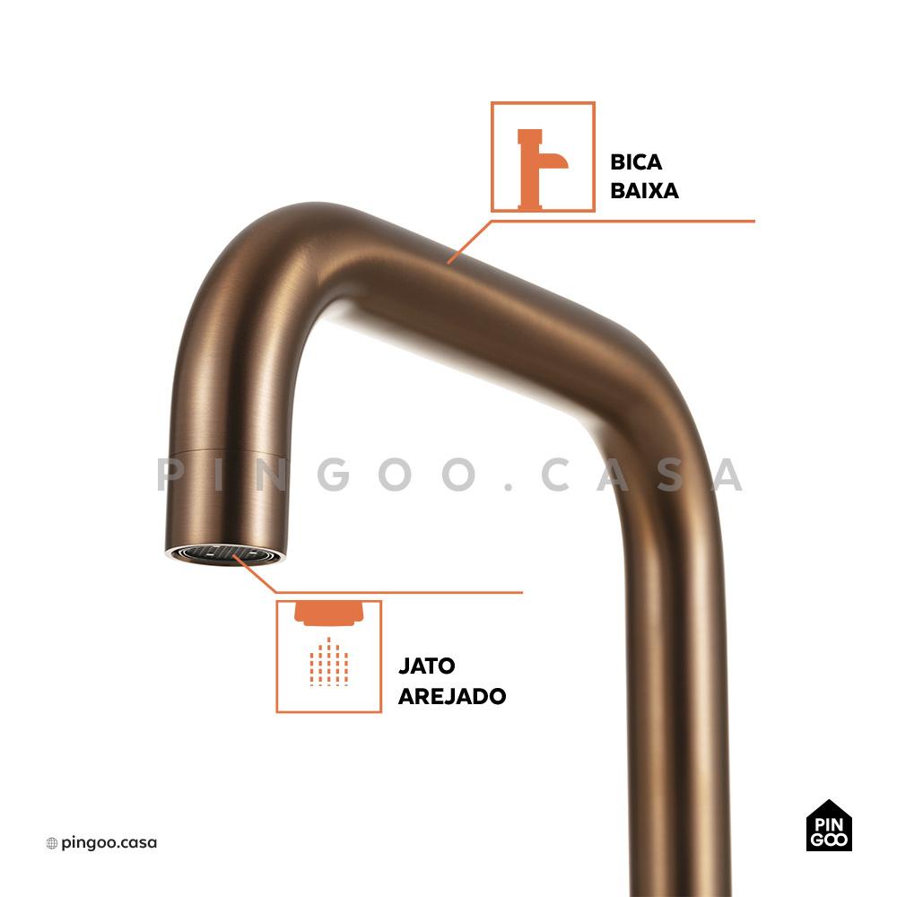Torneira Para Banheiro Misturador Duplo Comando Grajaú Pingoo - Dourado Rose