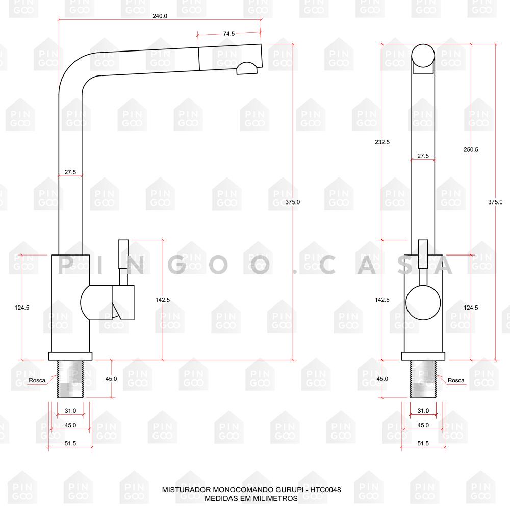 Torneira Para Cozinha Gourmet Misturador Monocomando Extensível Aço Inox 304 Gurupi Pingoo - Dourado Rose Escovado