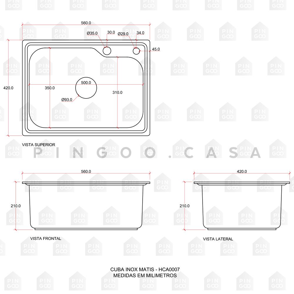 Cuba para cozinha pia inox com acessórios Matis Pingoo - Prata