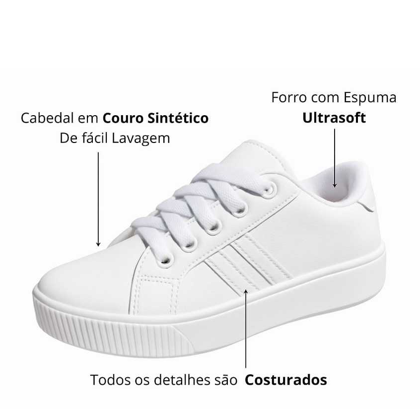 Tênis Infantil Menino Menina Branco Escolar Casual Volta as Aulas Festa Batizado
