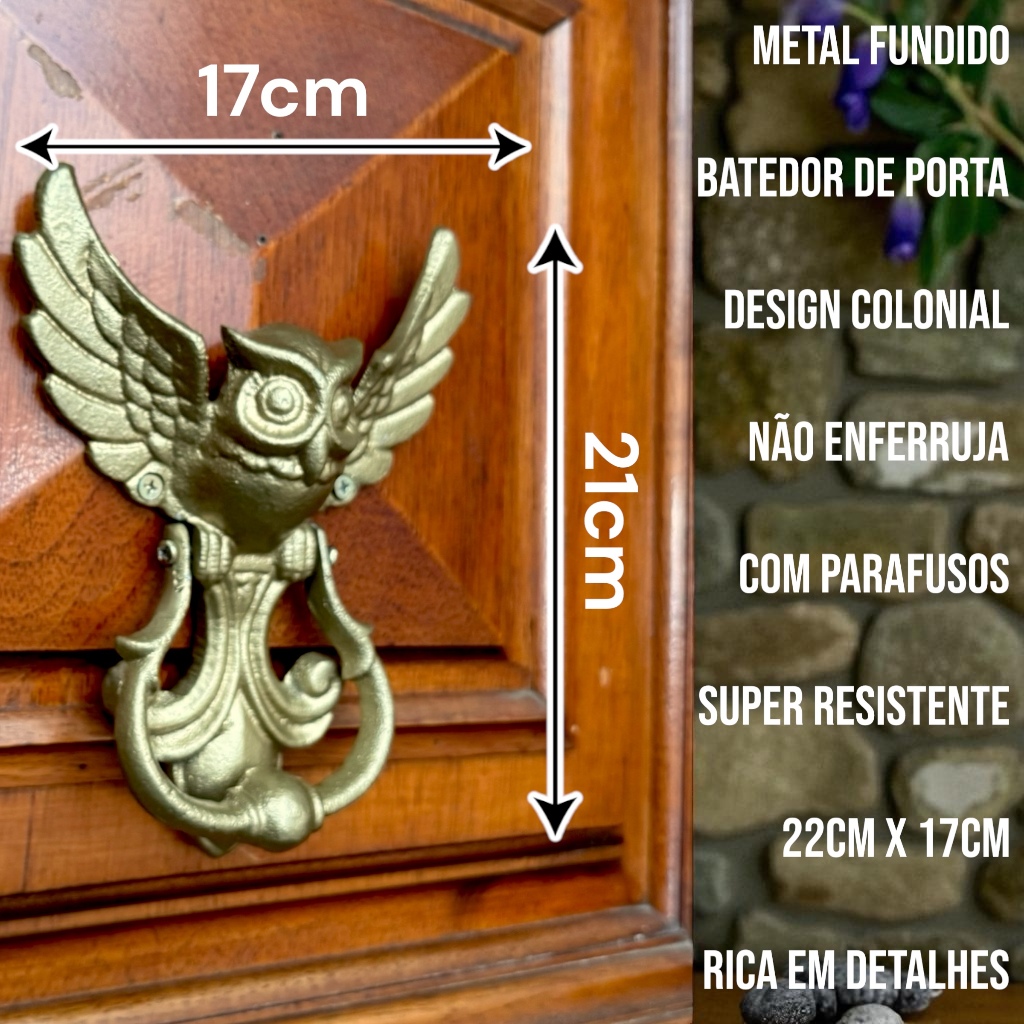Campainha Batedor De Porta Coruja Medieval Em Ferro Fundido Estilo Colonial Rústico Decorativo