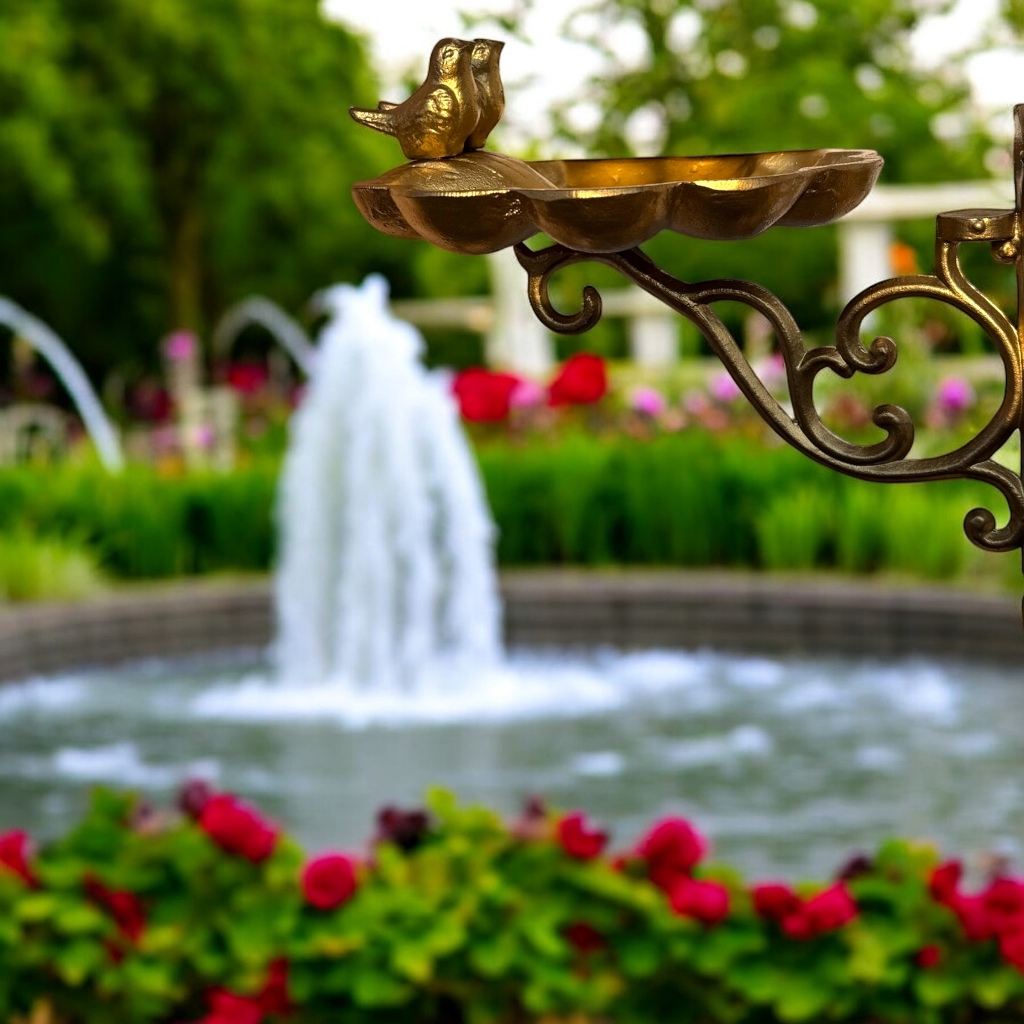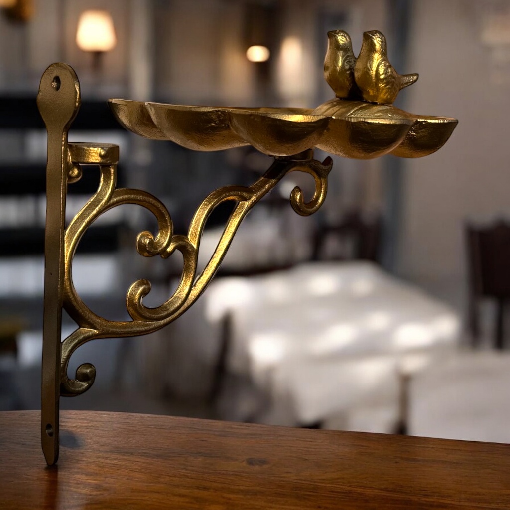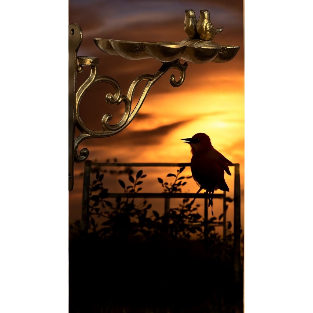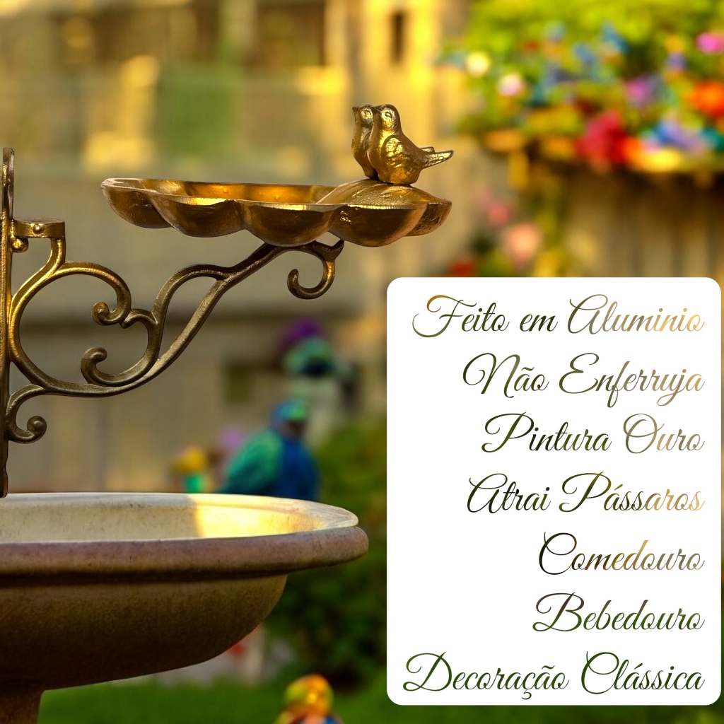 Bebedouro Comedouro Dourado P/ Passarinhos Suporte Aves Livres Decore seu Jardim Provençal Colonial