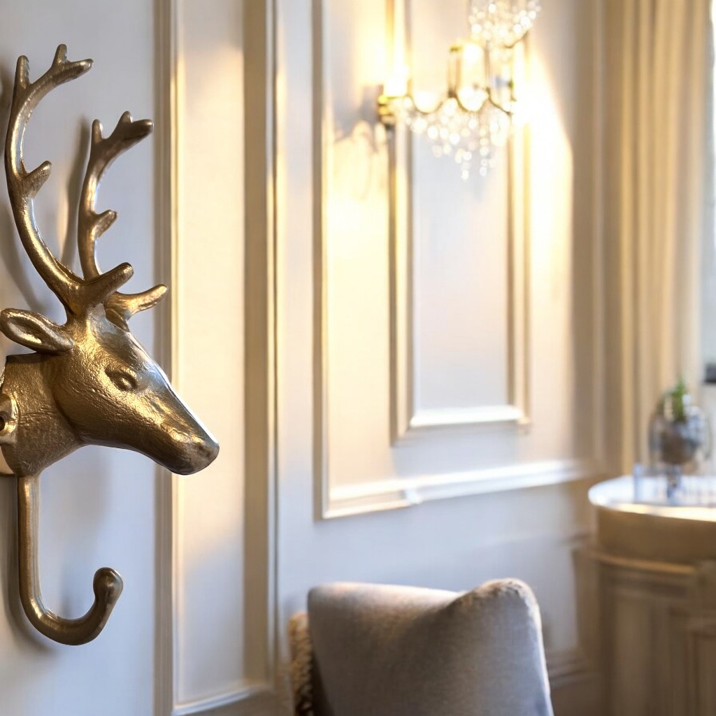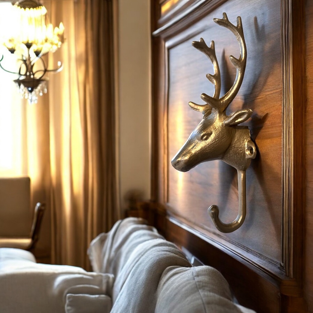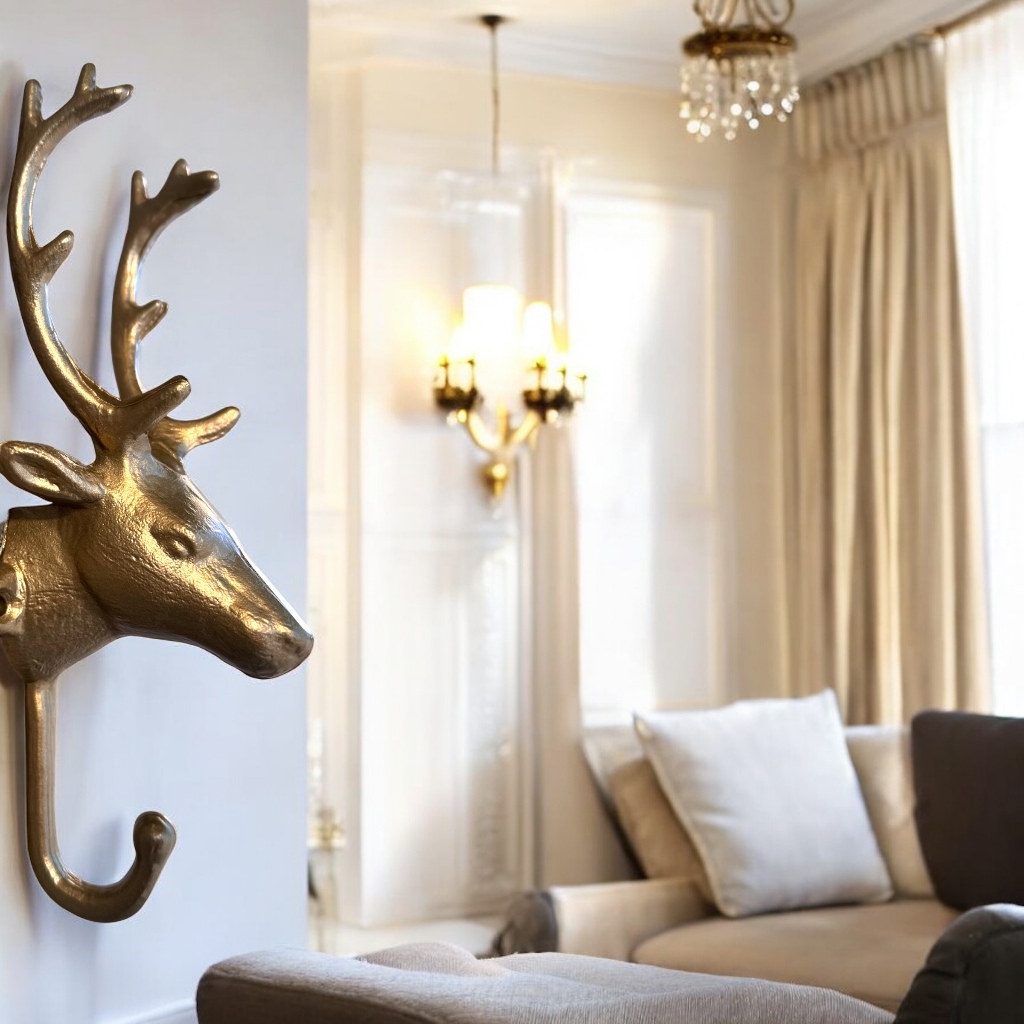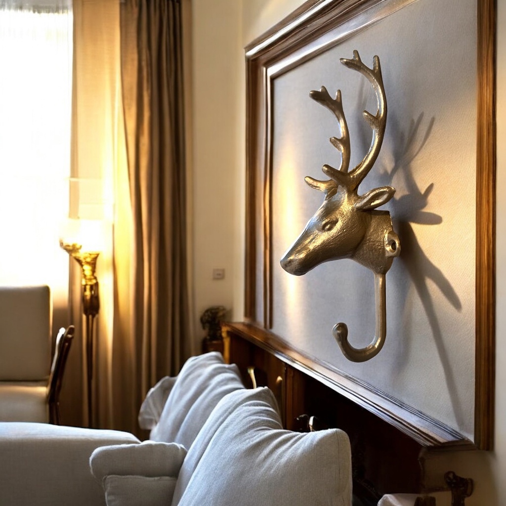 Gancho Decorativo Cabeça de Cervo Rena Em Metal 23cm Parede Bolsa Casaco Toalha Rústico