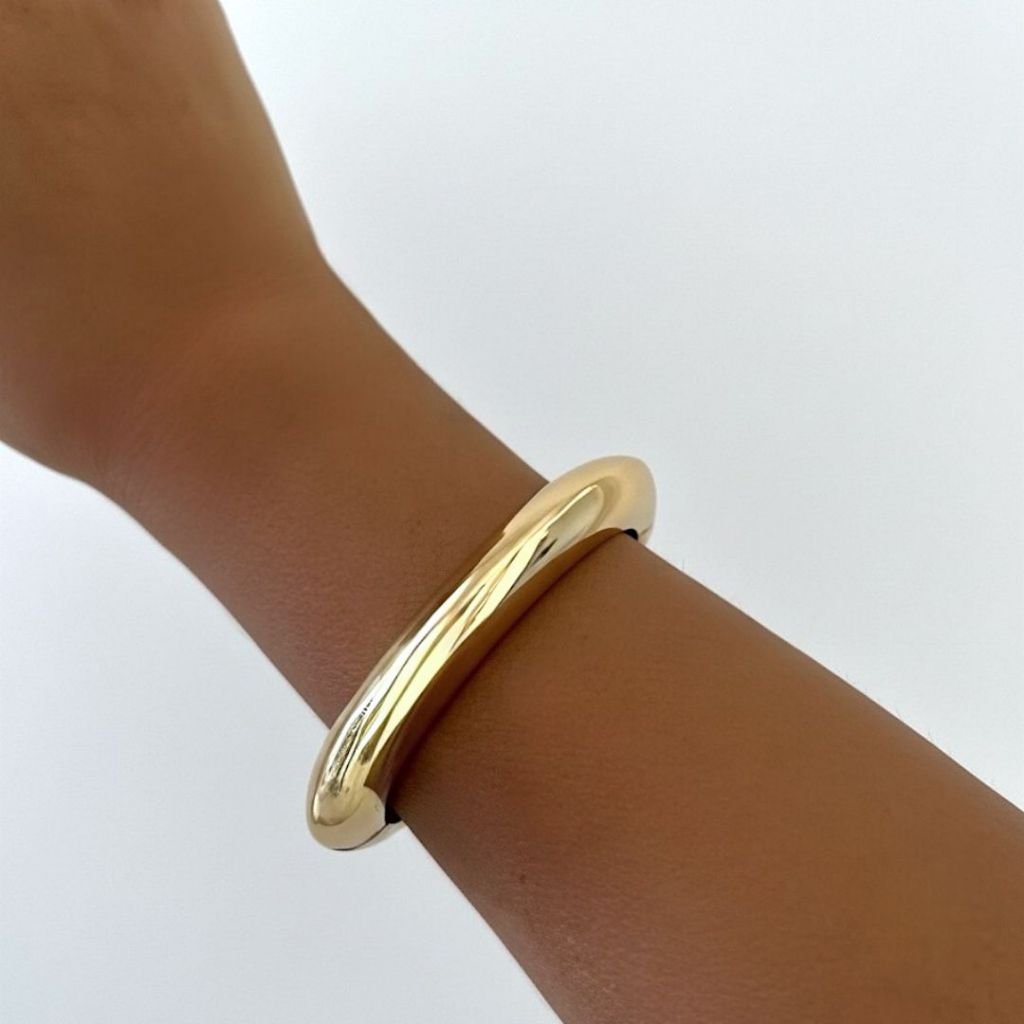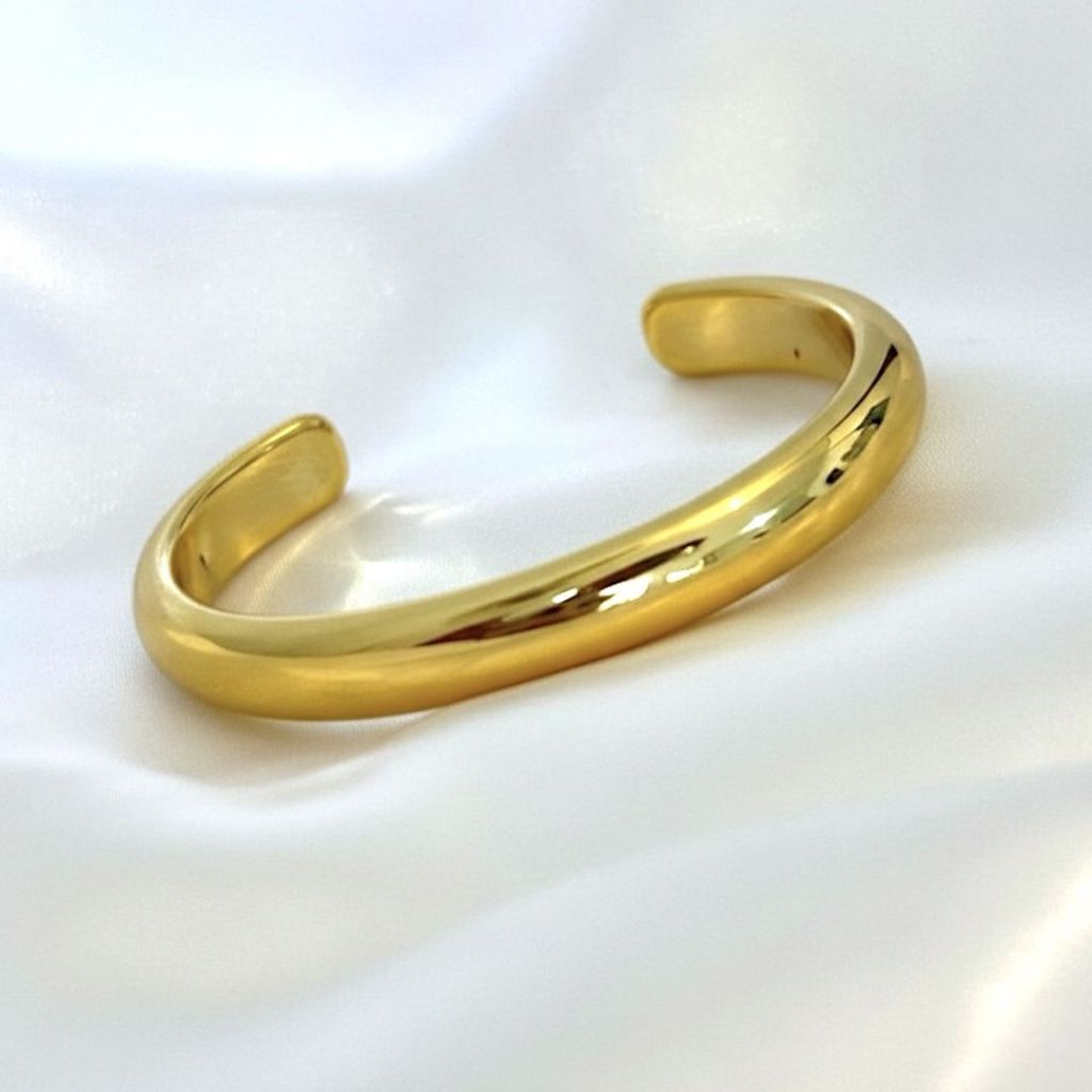 Pulseira Bracelete Liso Orgânico Dourado Material ABS Estilo Maxi Estruturado Elegante