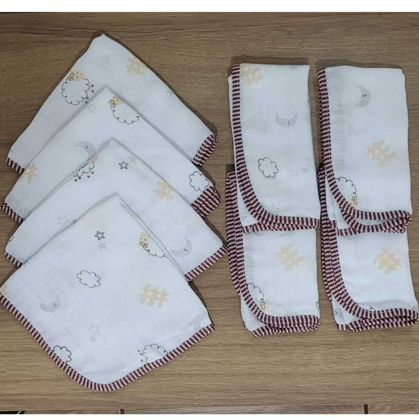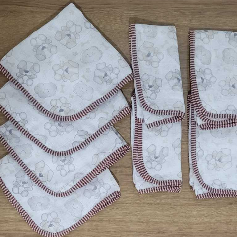 Fraldinha de Boca para Bebê Estampada Tecido 100% Algodão com 8 unidades