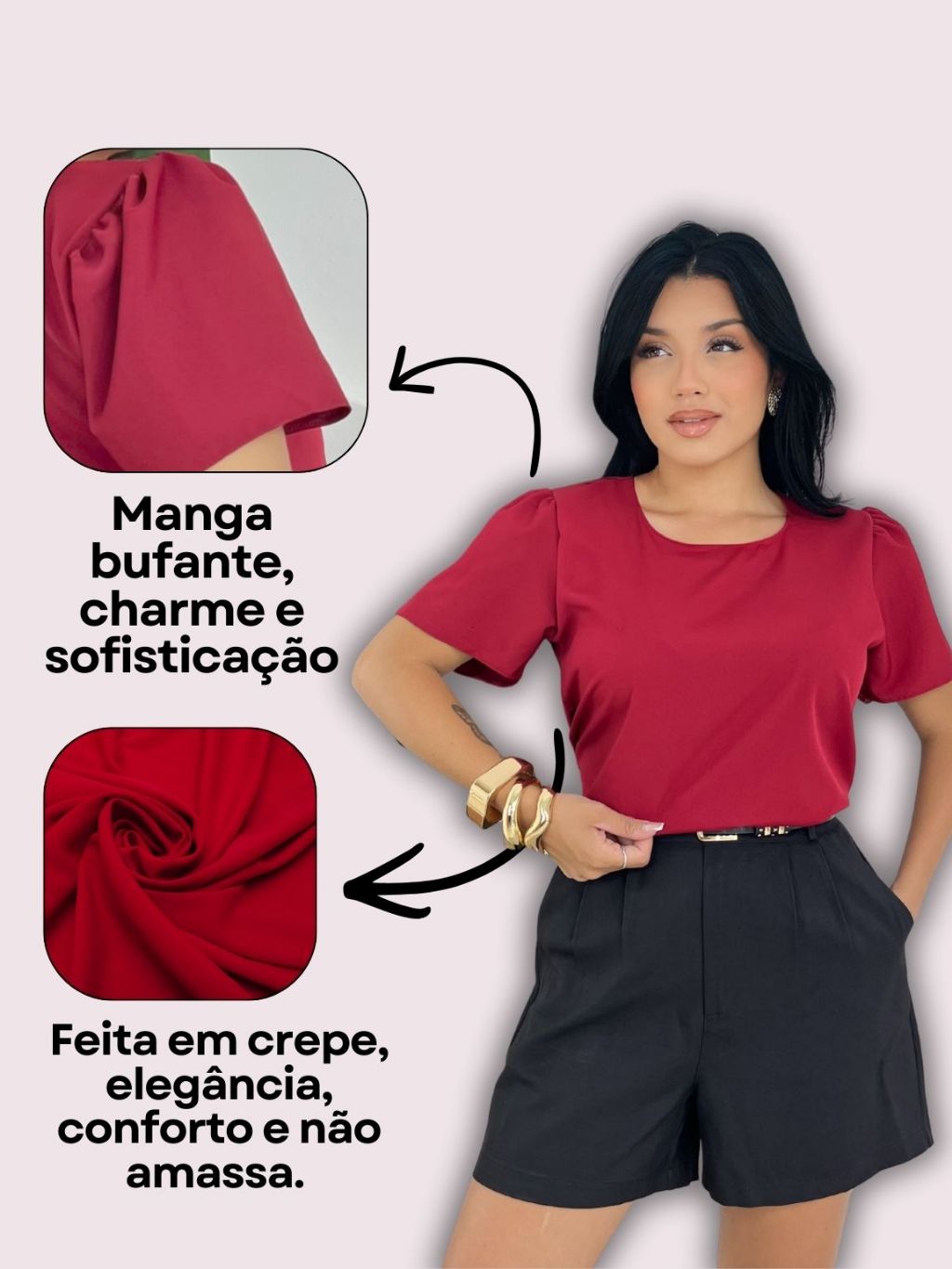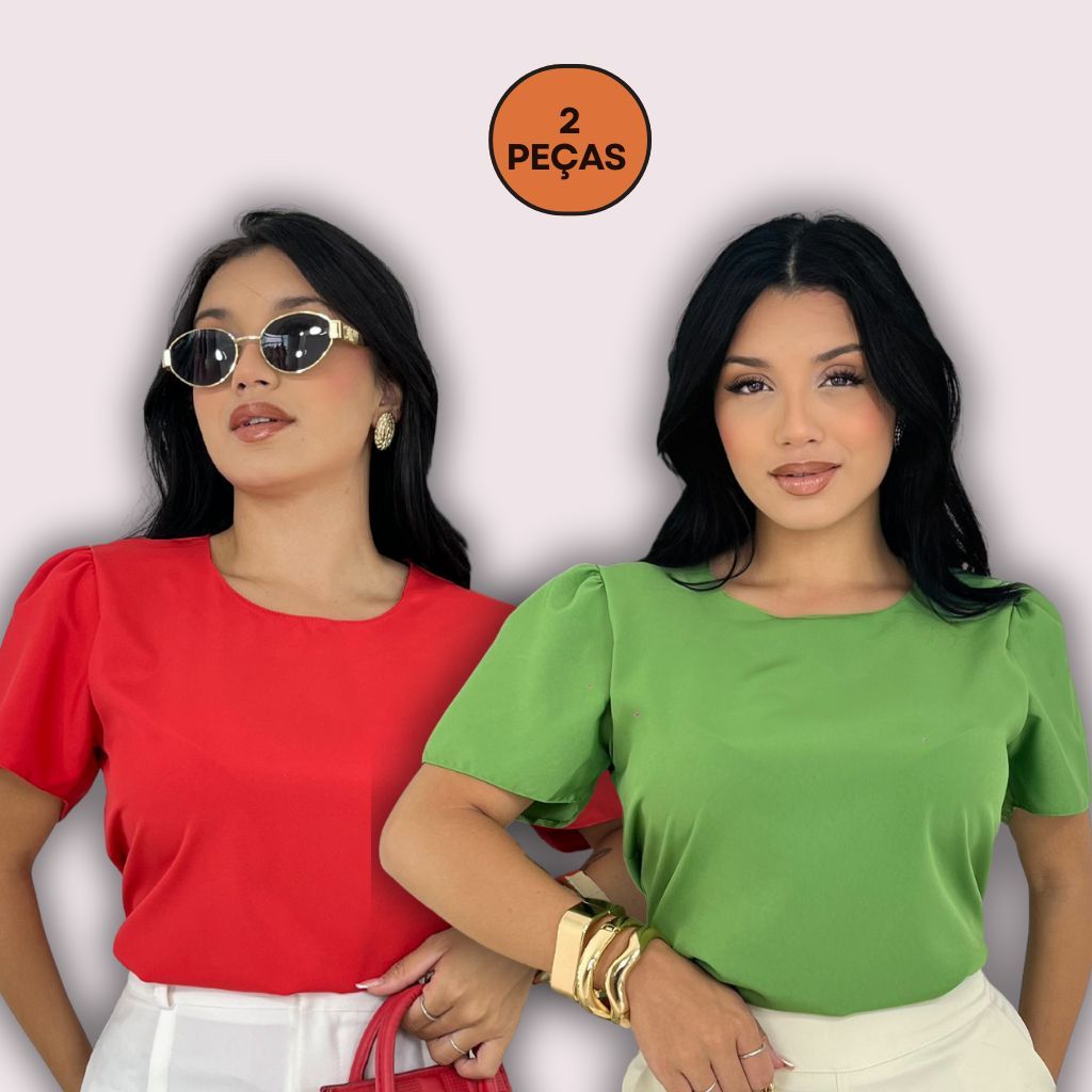 KIT 2 Blusa Social Feminina Manga Bufante Princesa Básica Crepinho Leve Lisa Trabalho
