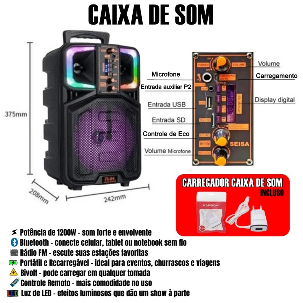 Karaoke Party Box Profissional +12000 Mil Músicas +2 Microfones Sem Fio +Caixa De Som Potente 2000w
