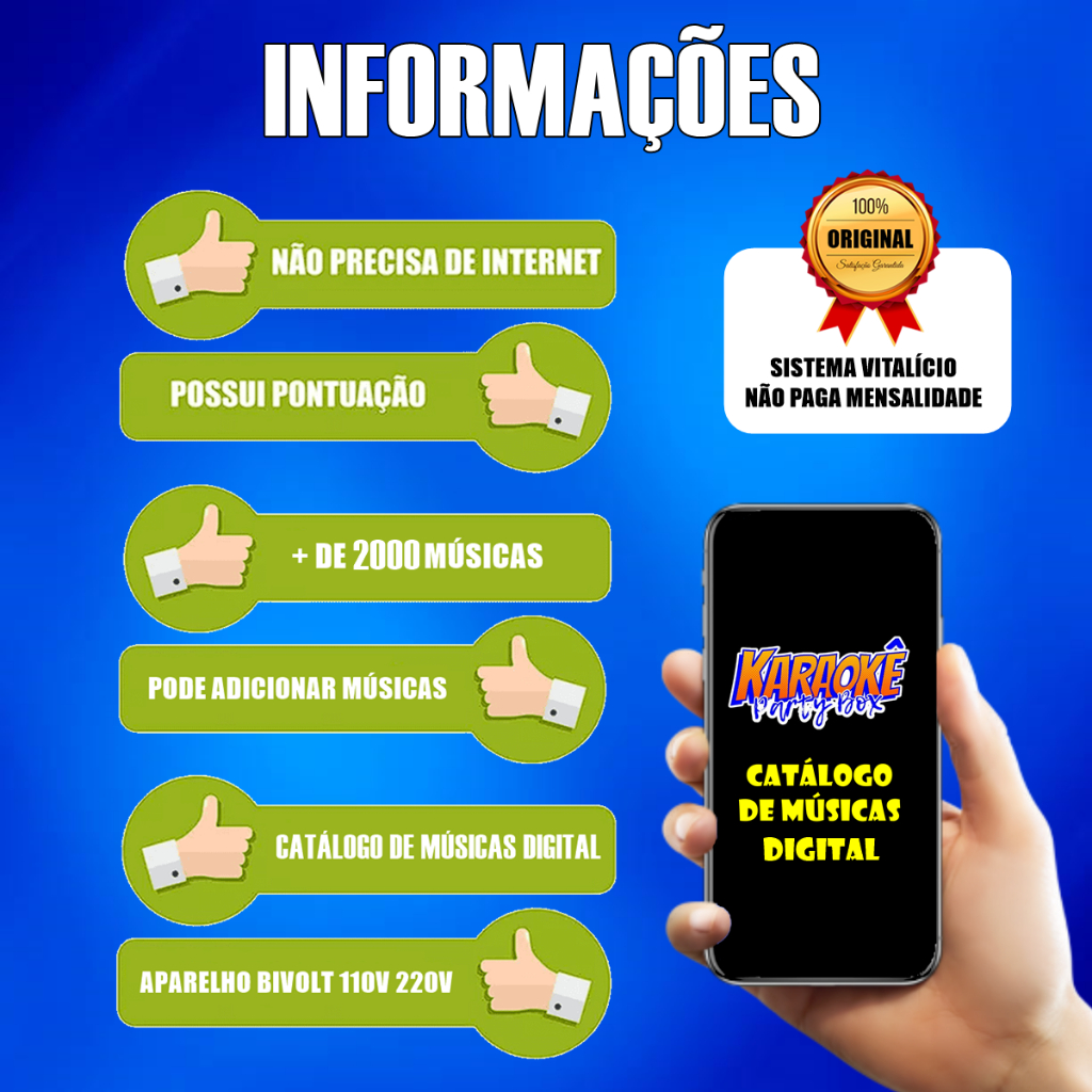 Karaokê Party Box Preto +De 2000 Músicas Sistema Com Pontuação (Não Precisa de Internet) ORIGINAL