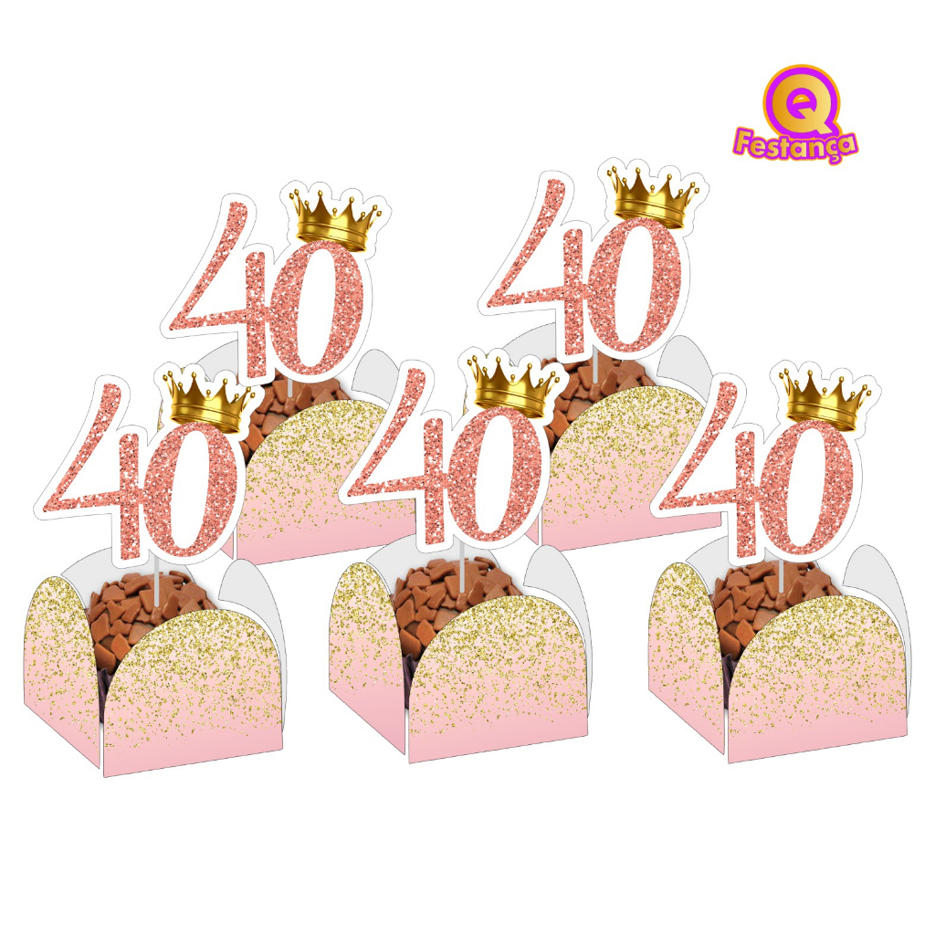 Toppers para Docinho 3cm 40 Anos - Tags Brigadeiro Beijinho Festa Aniversário Mesversario