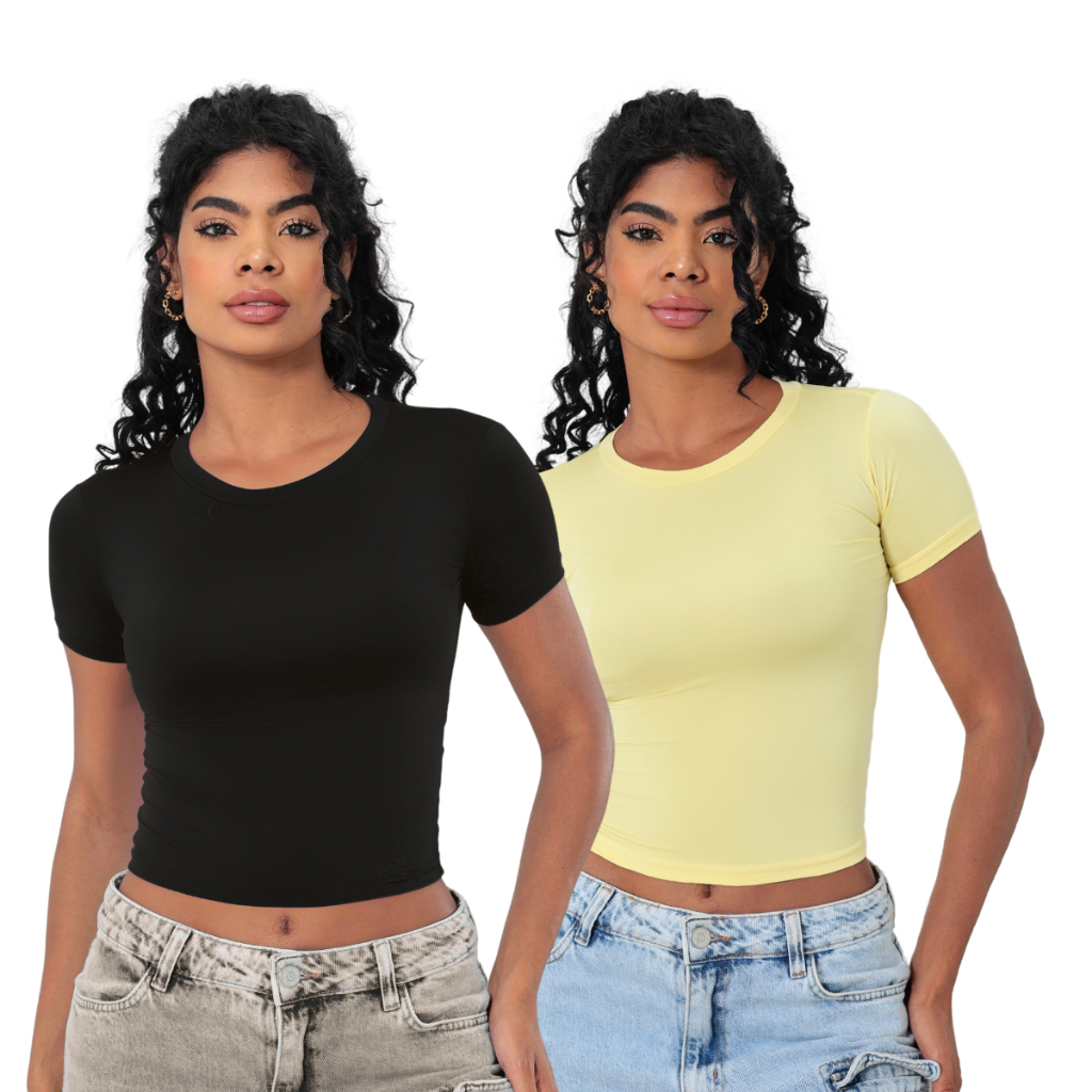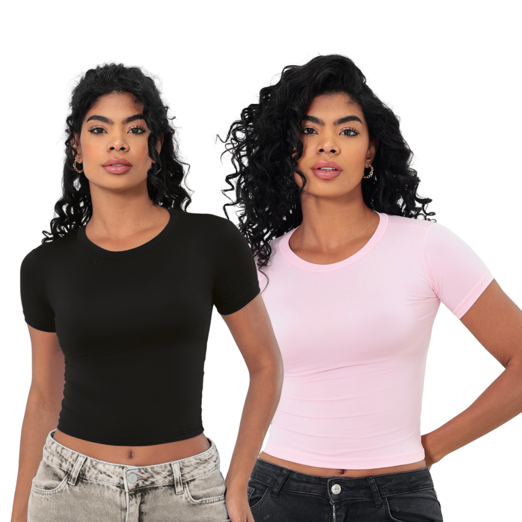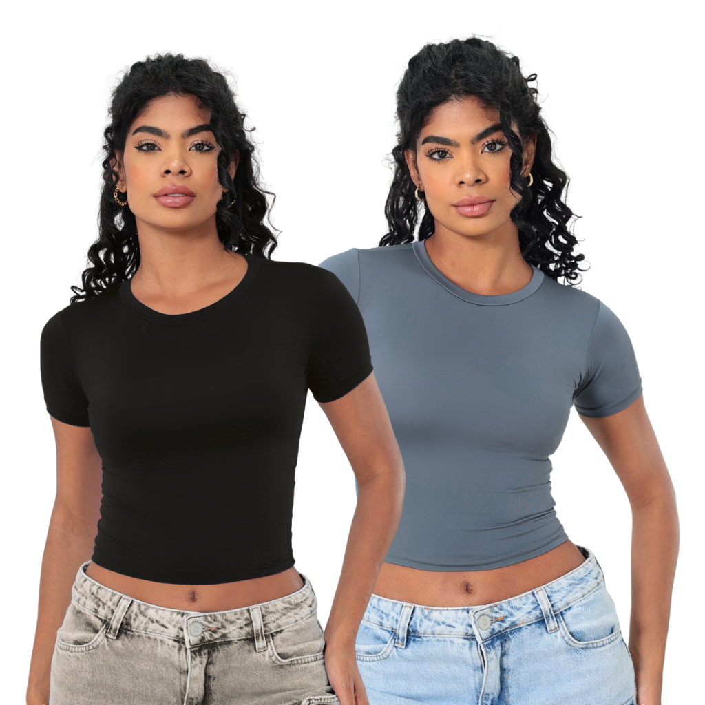 KIT 2: Baby Tee Feminina - Blusa Slim Fit Manga Curta
