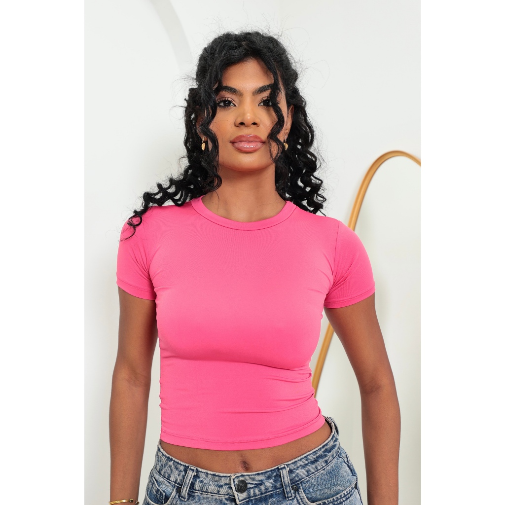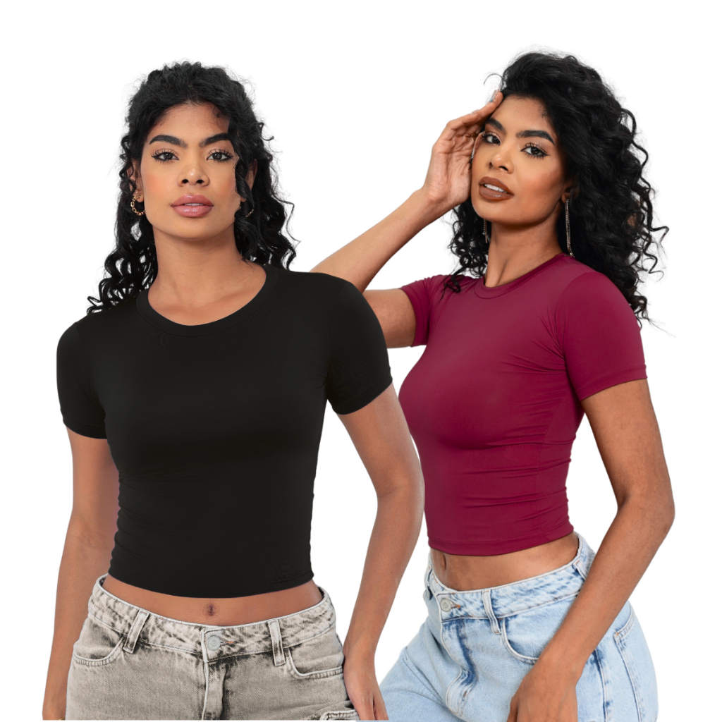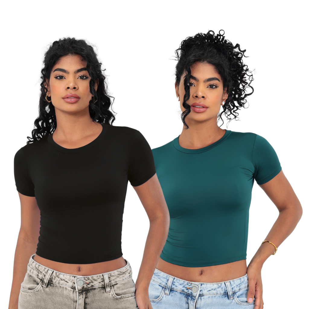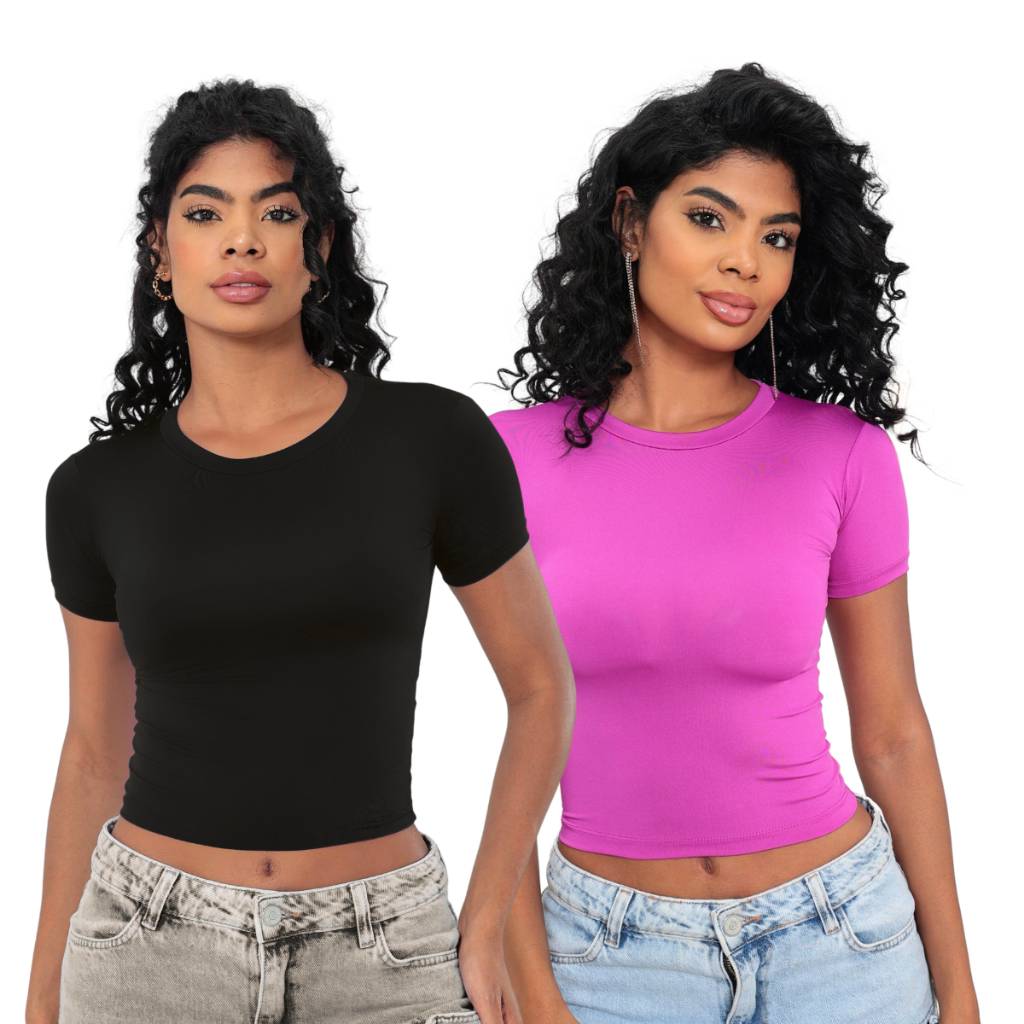KIT 2: Baby Tee Feminina - Blusa Slim Fit Manga Curta