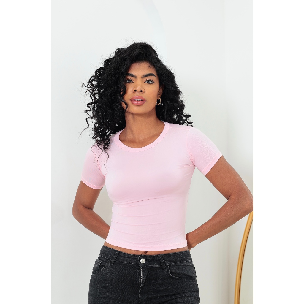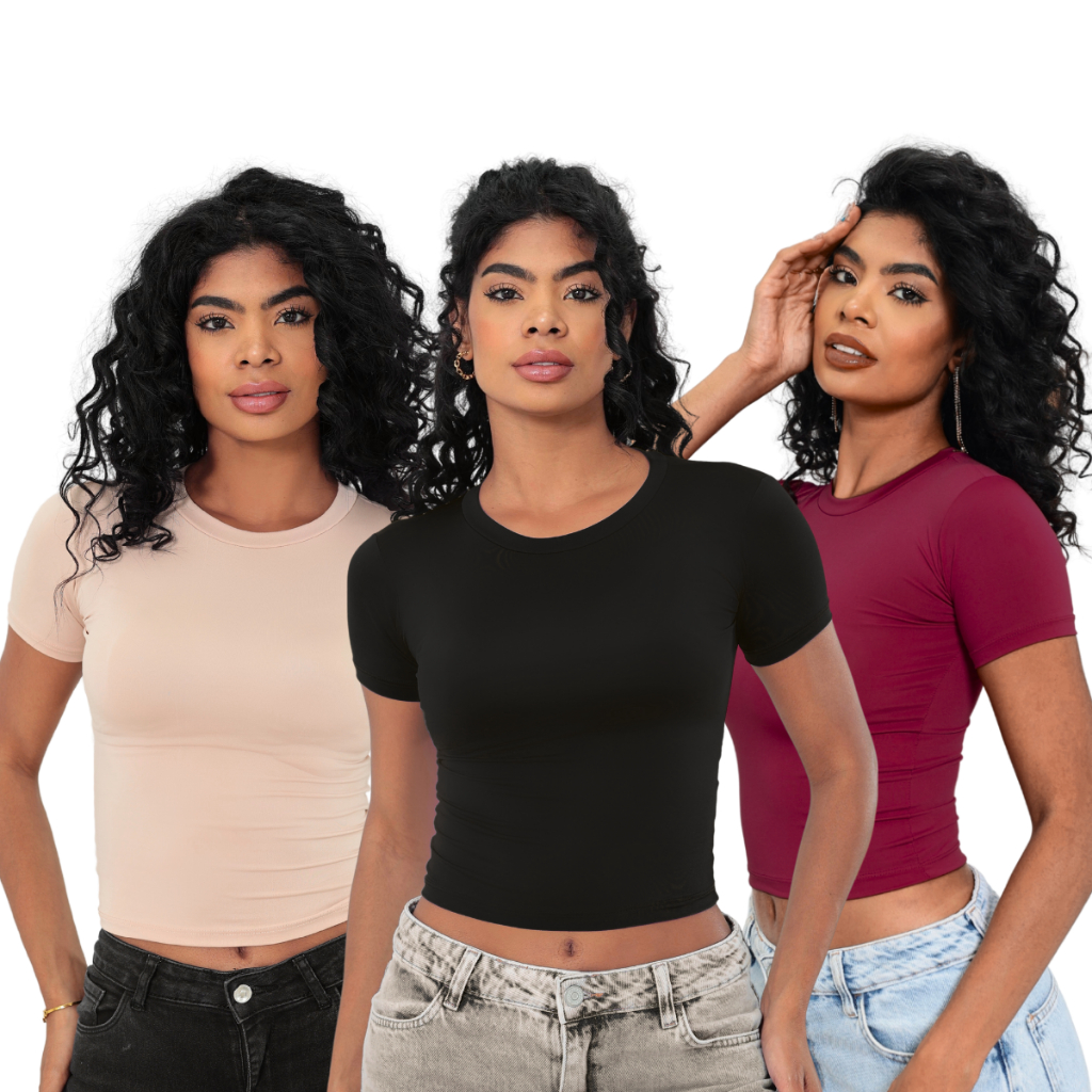 KIT 3: Baby Tee Feminina - Blusa Slim Fit Manga Curta - Blusa de Compressao