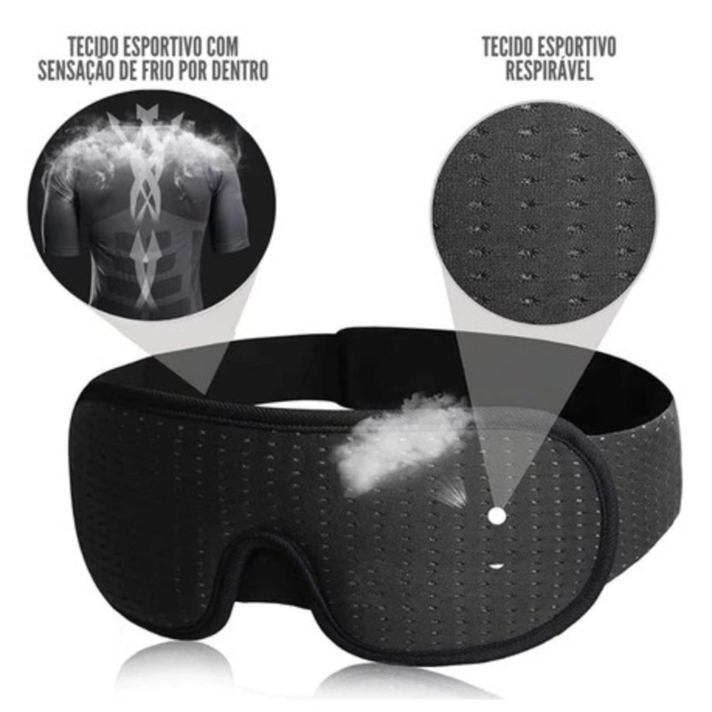 Mascara De Dormir Tapa Olhos 3D Blackout Super Confortavel Com Espuma Tecido Esportivo Frio - RESPIRAV
