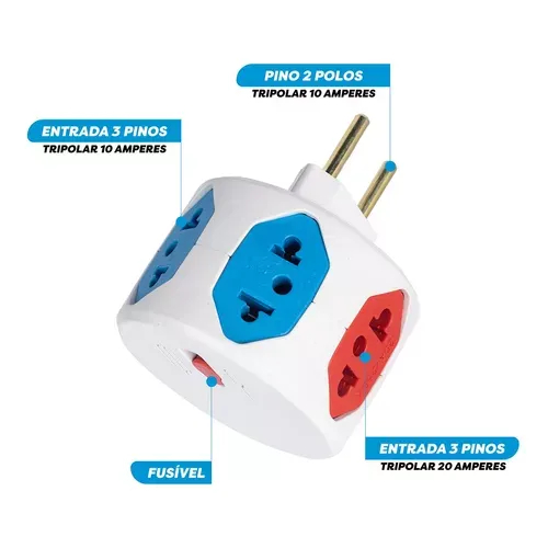 Adaptador Tomada Hexágono 6 Saídas - Filtro De Linha