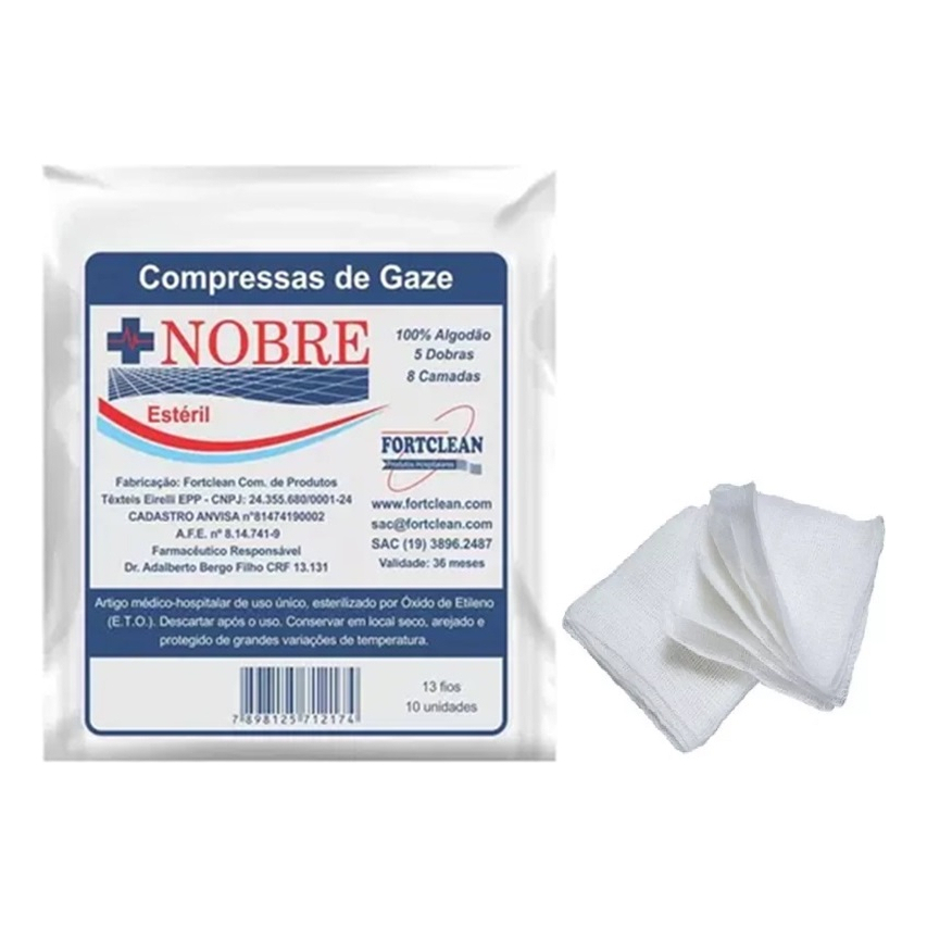 Kit 100 Envelopes Gaze Estéril 13 Fios Nobre c/ 10 unidades Cada Totalizando 1000 unidades