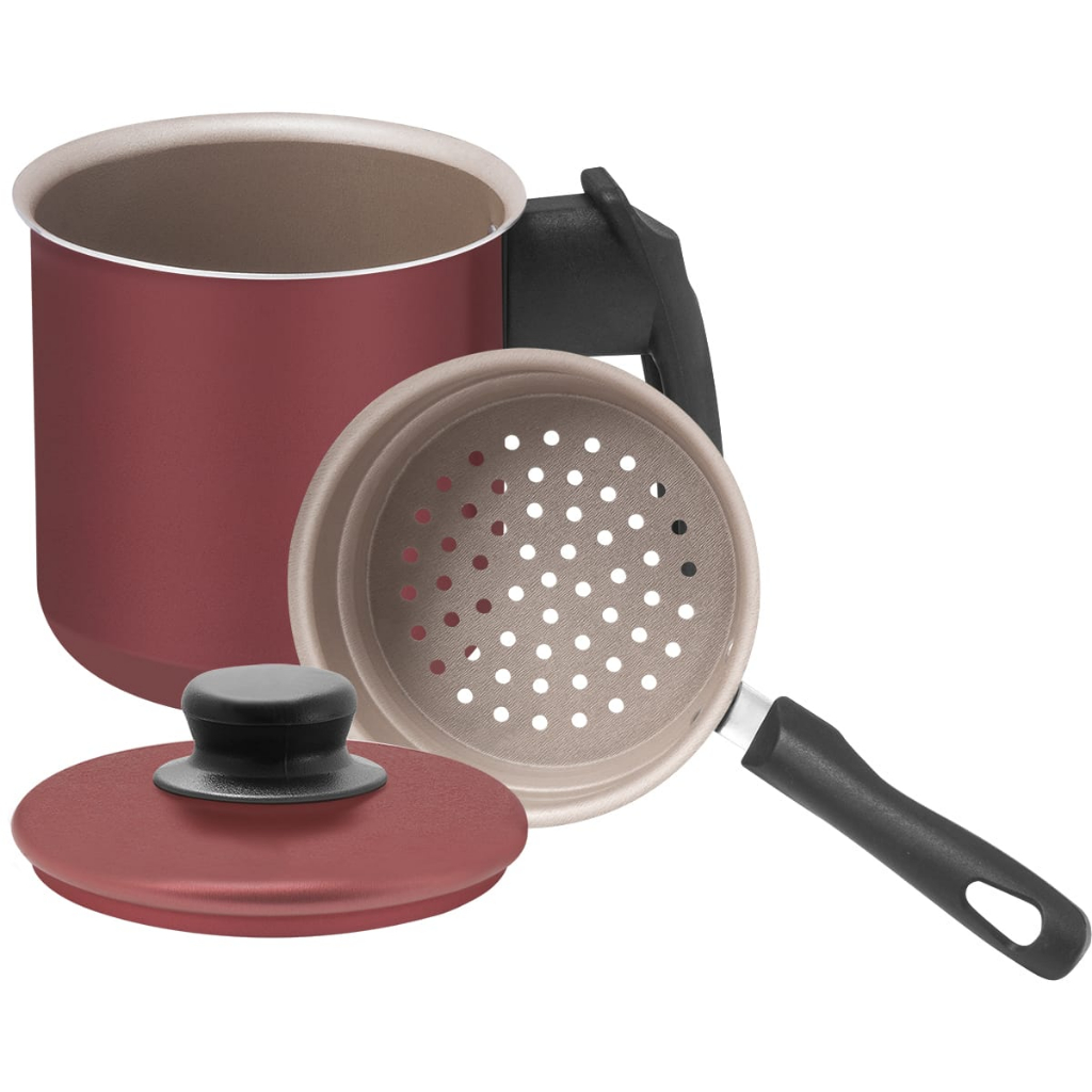 Panela de Cuscuz Cuscuzeiro Mini Individual Cozido a Vapor em Alumínio C Tampa de Vidro Linha Color