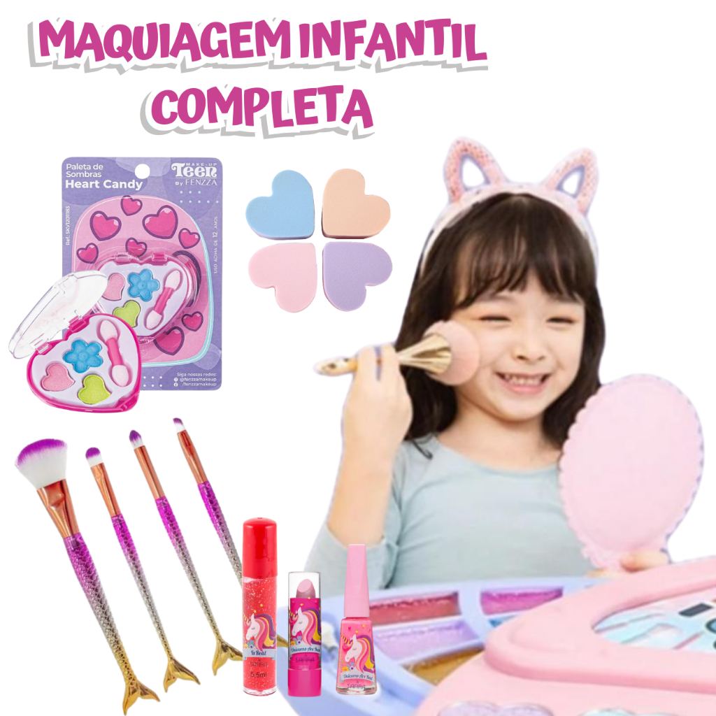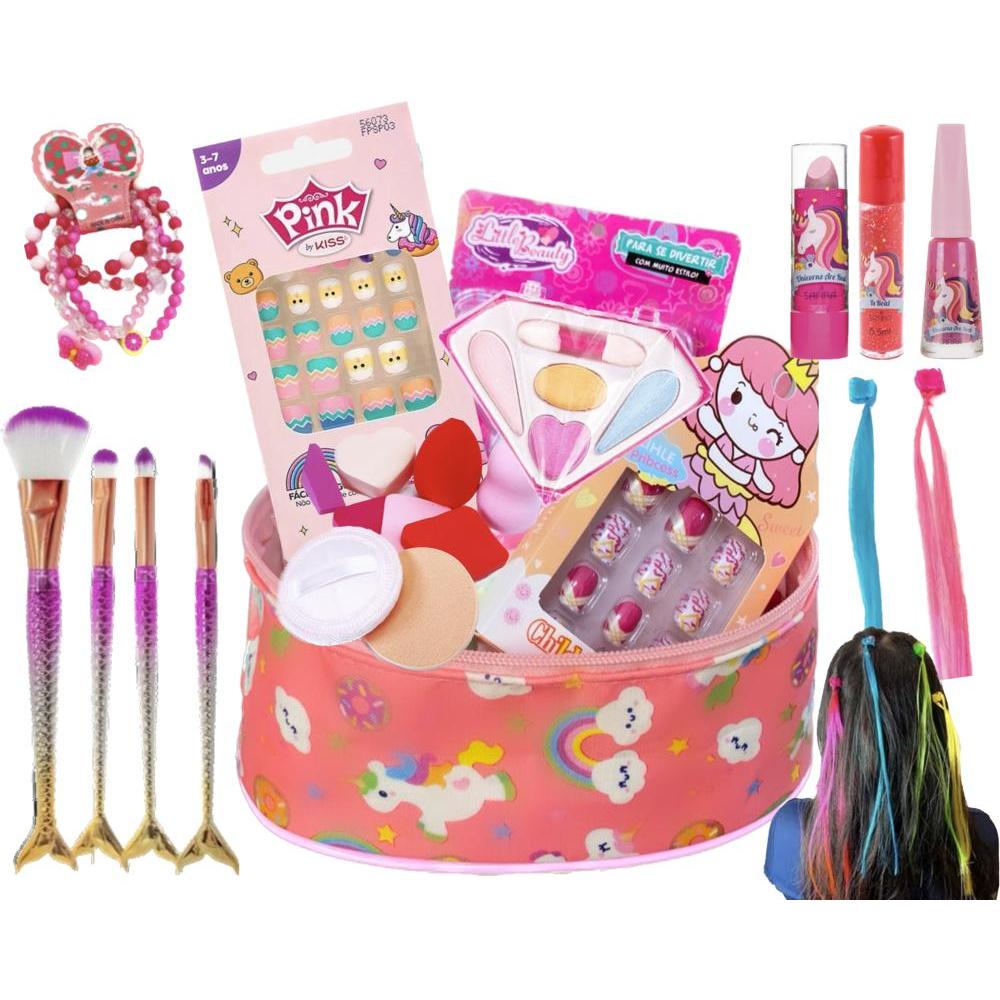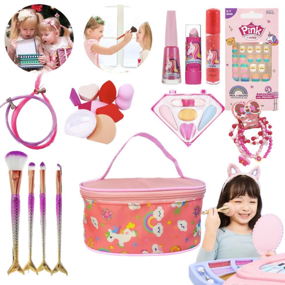 Kit De Maquiagem Infantil 15 itens + Maleta, Kit Infantil de Maquiagem Completo