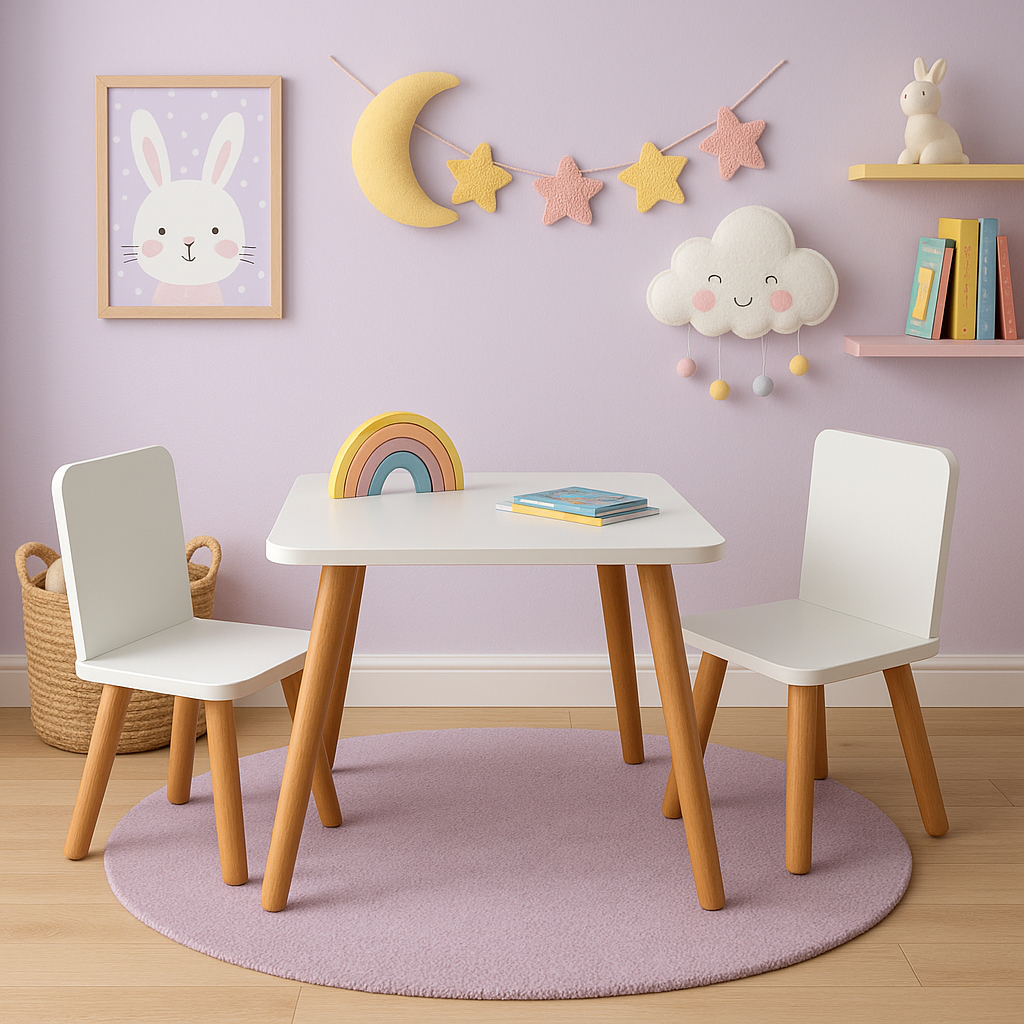 Mesa Infantil Cadeira 60cm Altura100%Mdf pés em Madeira Menino Menina Promoção