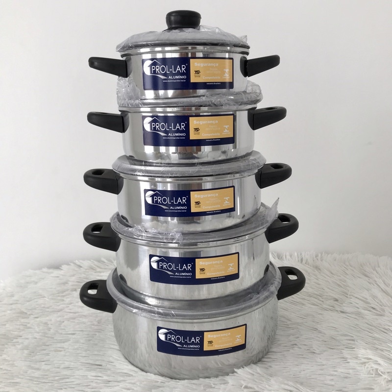 Jogo com 5 panelas em alumínio de otima qualidade.