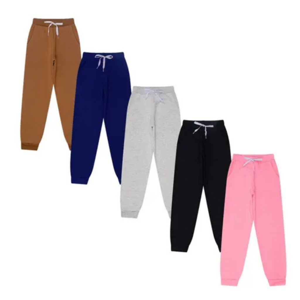 Kit 5 Calças Moletom Infantil Flanelada Roupa Juvenil Menina Com Bolso