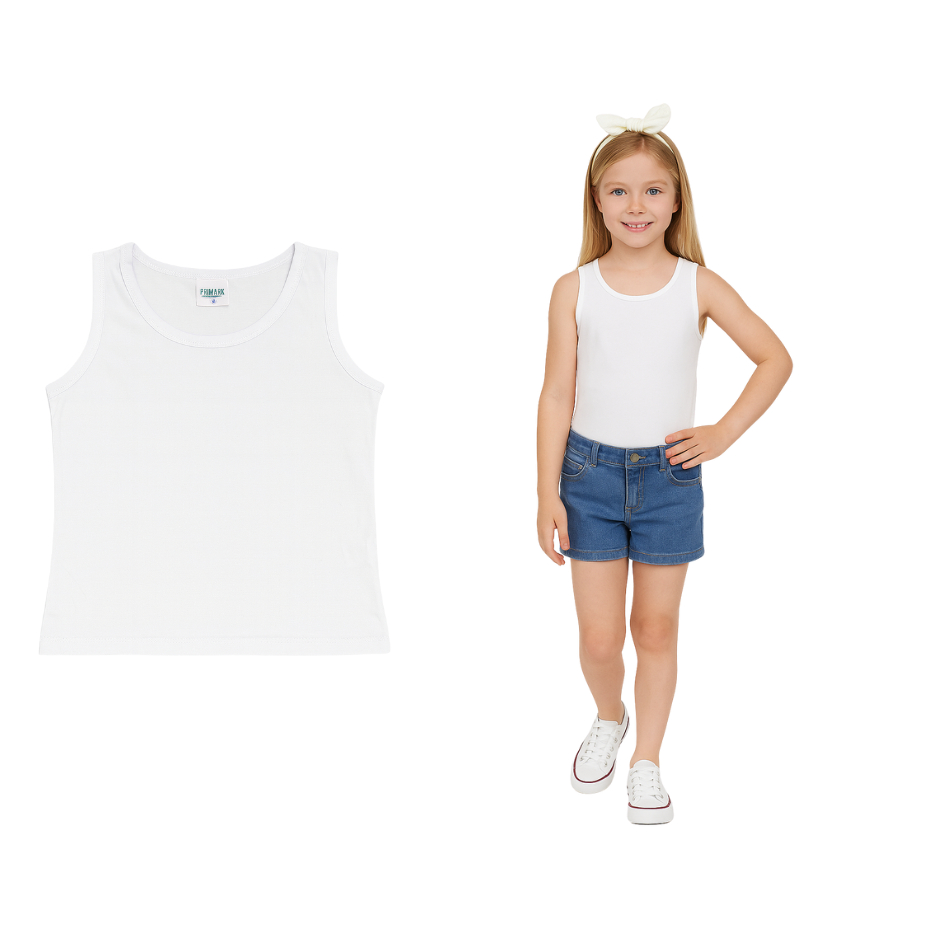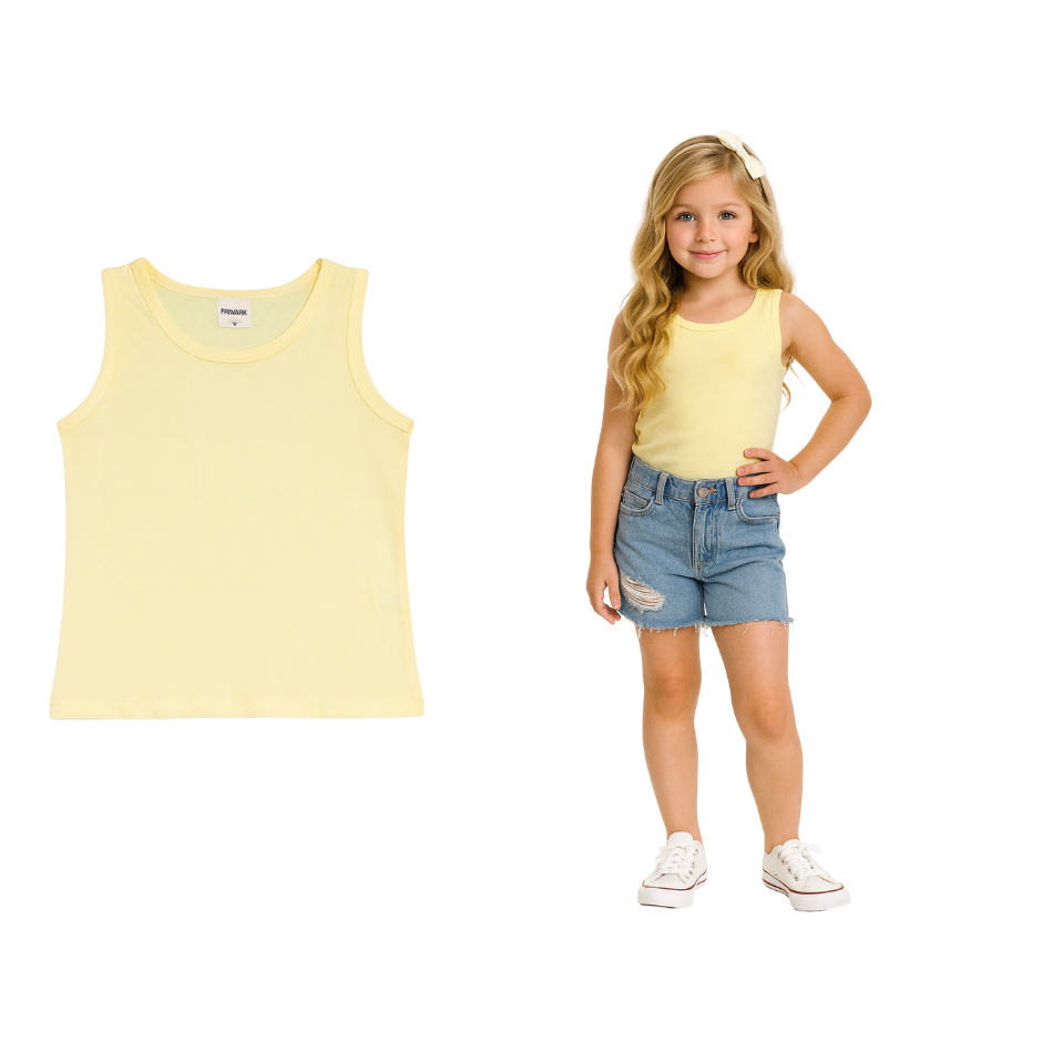 KIT 5 Blusas Infantil Menina Regata Tecido Cotton Verão Blusinhas Regatinhas Básicas Juvenil