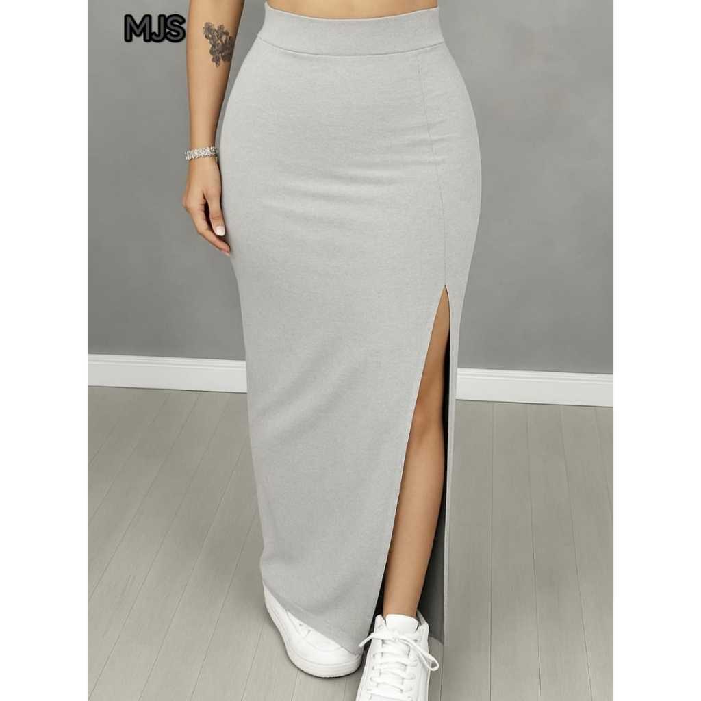 Saia Com Fenda Lateral Modelagem Perfeita No Corpo Midi Casual Sensualidade Elegância Suplex