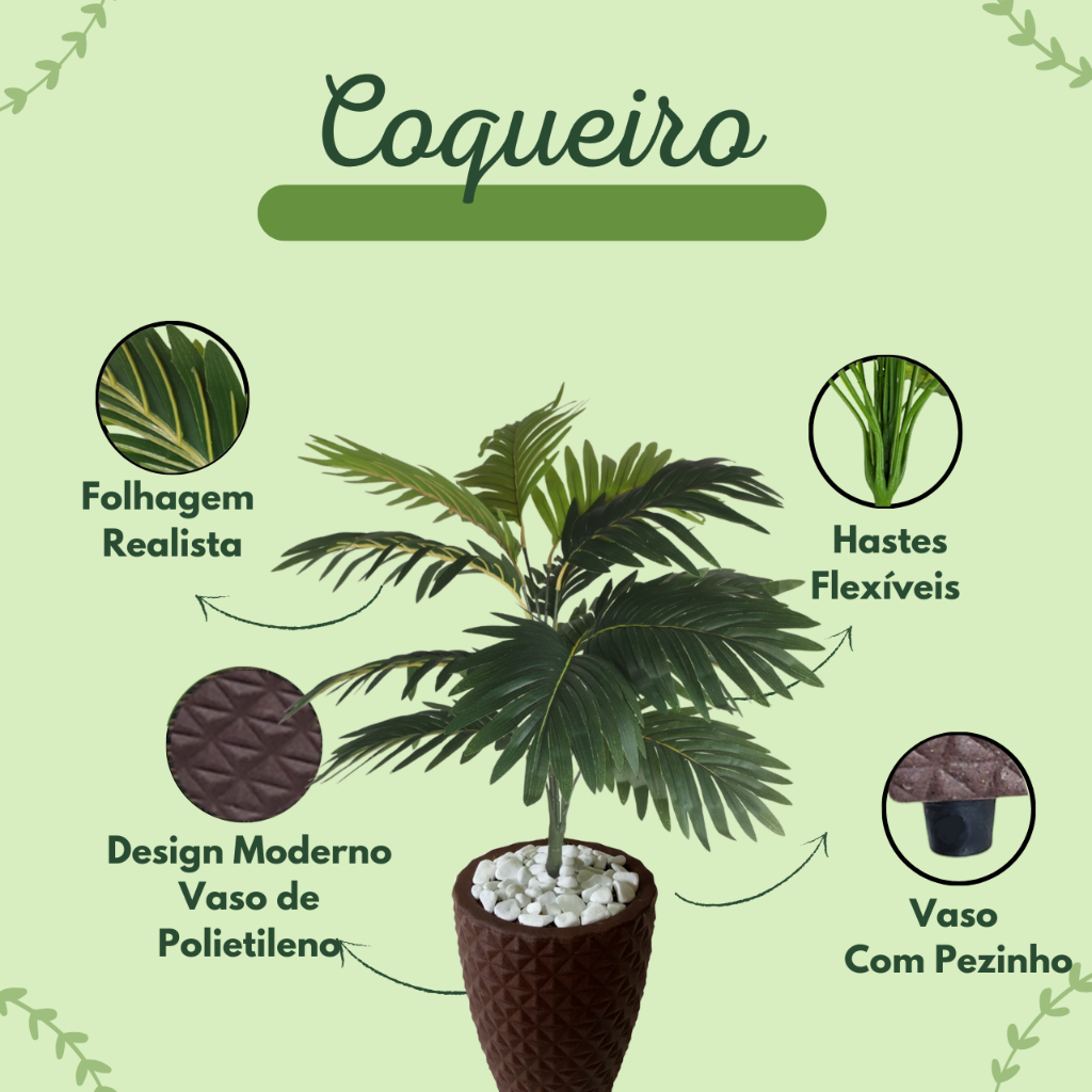 Planta Artificial Palmeira Arranjo Coqueiro + Vaso Grande Polietileno Decorativo Enfeite Sala Casa